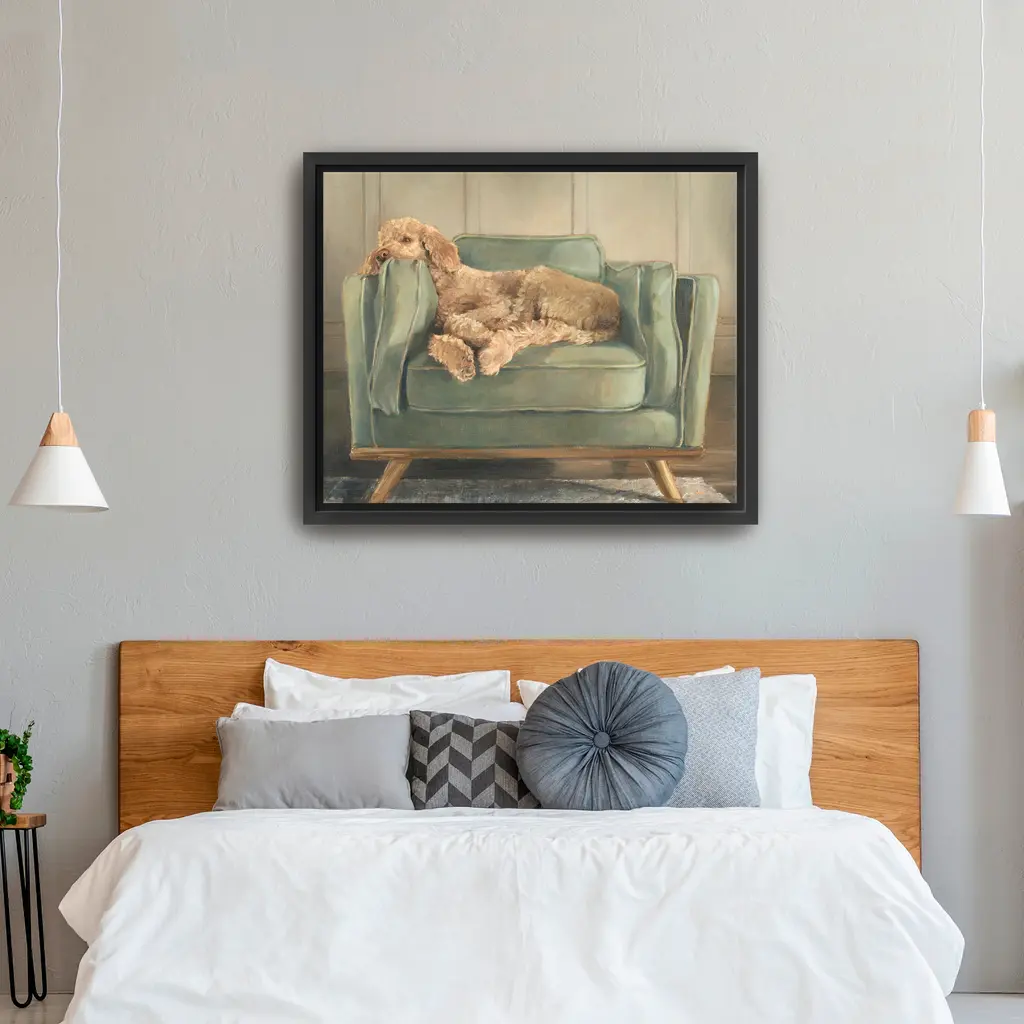 This heartwarming canvas portrays a peaceful pup curled up on the sofa, bringing warmth and coziness to any space. Our Gallery Wrap Canvas Prints are proudly assembled with high quality materials in California, USA. Each piece is printed on a thick, archival grade canvas using Giclee technology. It is then hand-stretched by our experienced artisans over solid wood bars, which will not warp over time. The final product is a piece personally crafted for you to confidently display on your wall. Care and Assembly: Ensure that the location of your piece has little to no exposure to heat, sunlight, and moisture. Wipe clean, only if needed. Each piece includes a sawtooth hanger to hang on your wall horizontally.