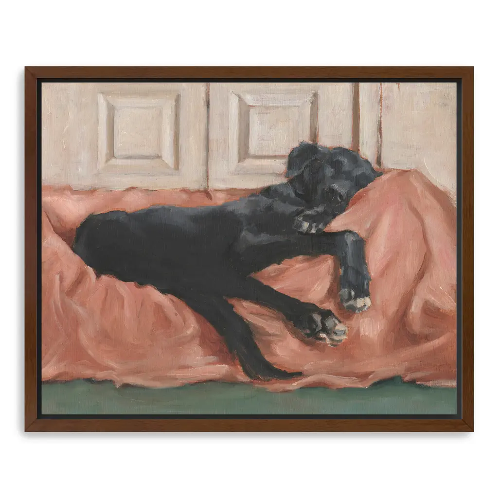 This heartwarming canvas portrays a peaceful pup curled up on the sofa, bringing warmth and coziness to any space. Our Gallery Wrap Canvas Prints are proudly assembled with high quality materials in California, USA. Each piece is printed on a thick, archival grade canvas using Giclee technology. It is then hand-stretched by our experienced artisans over solid wood bars, which will not warp over time. The final product is a piece personally crafted for you to confidently display on your wall. Care and Assembly: Ensure that the location of your piece has little to no exposure to heat, sunlight, and moisture. Wipe clean, only if needed. Each piece includes a sawtooth hanger to hang on your wall horizontally.