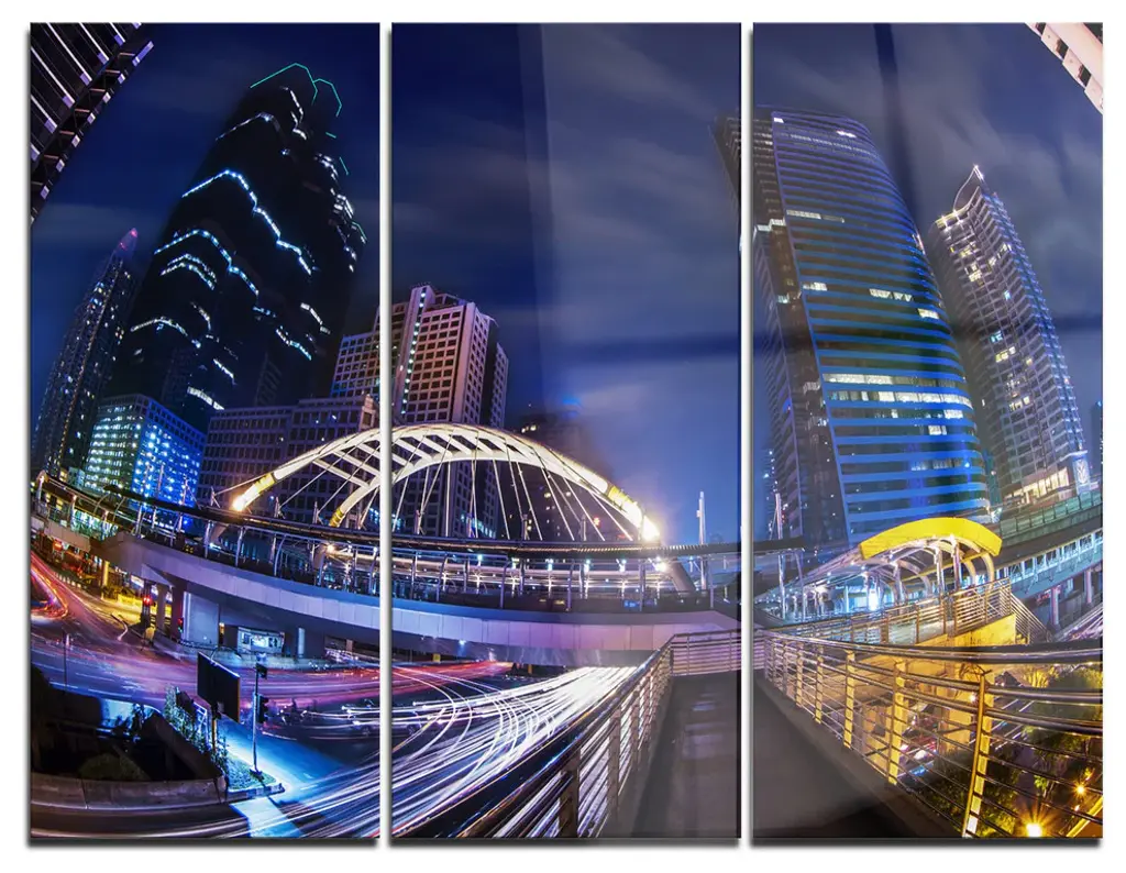 "Traffic In Hong Kong At Night" Metal Wall Art, 3 Panels, 36"x28"