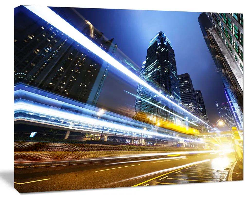 Bring contemporary abstraction to your home with this large 36W x 28H Metal Wall Art. This Traffic in Hong Kong at Night Metal Artwork makes it the focal point of any room or office. - White gloss coating ensures colors are extra vibrant with light reflection.- Aluminum grade sheet metal with 1-inch mounting frame on the back giving the illusion that the artwork is floating on the wall.- Mounting brackets are included along with instructions.- High quality digital images are created directly into a glossy aluminum panel producing a stunning and captivating print into the glossy finish of the metal.- Water, fire and scratch resistant HD aluminum panels.- Looks better than any photo paper and guaranteed to last at least 20 years- Easy to clean with a microfiber cloth. Colors are far superior to regular canvas art. - Easy to hang