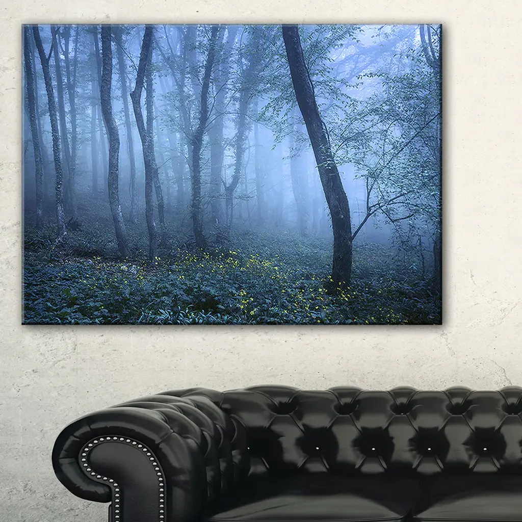 The Trail Through Blue Fall Forest canvas art print is sure to make an impression on anyone who sees it. This artwork is gallery wrapped around a 1-inch solid wood frame and arrives carefully packaged and entirely ready to hang on the wall. Design Art only uses the highest resolution and pigments to ensure a crisp colorful print that is never faded or pixelated. This artwork is sure to be a conversation starter in any home or office.