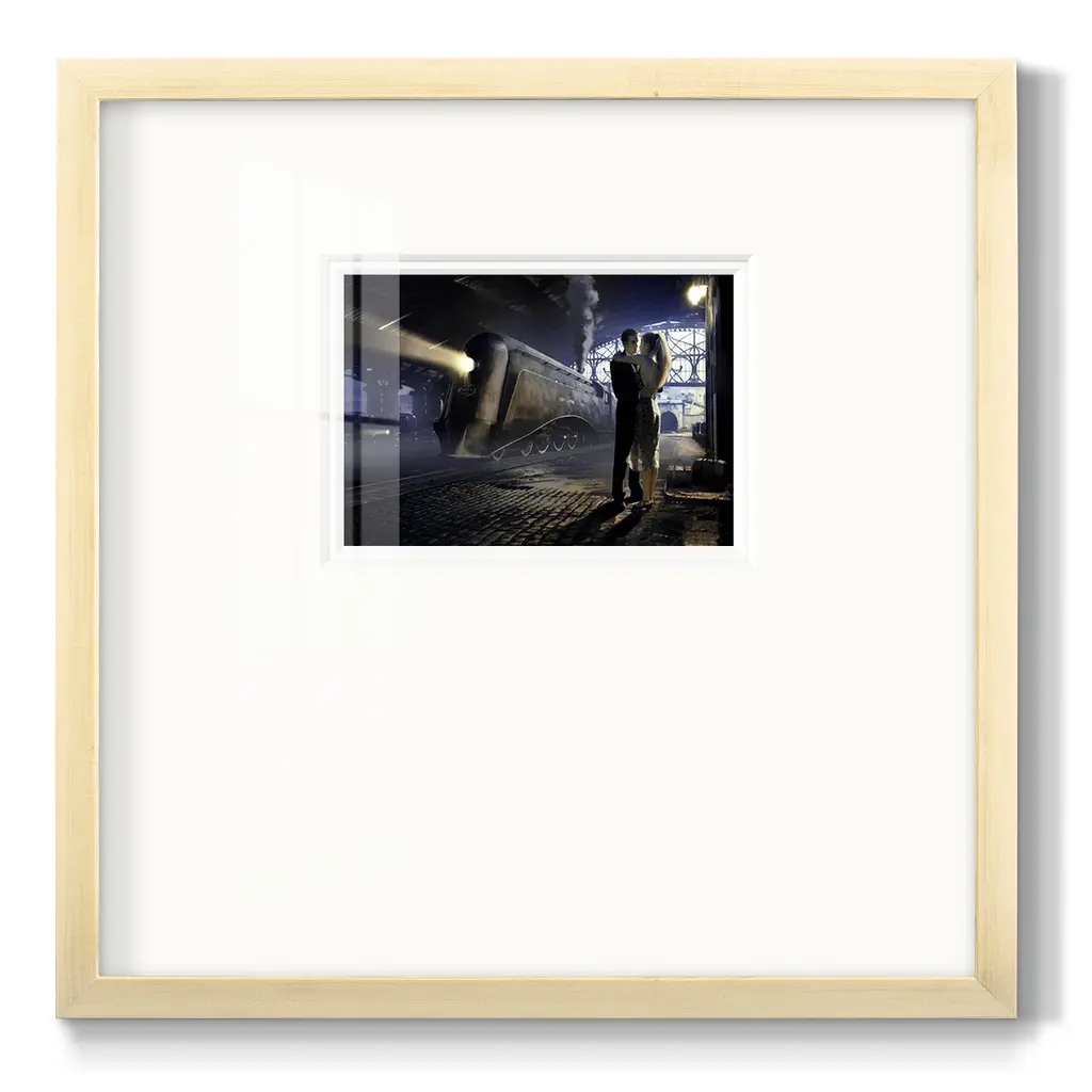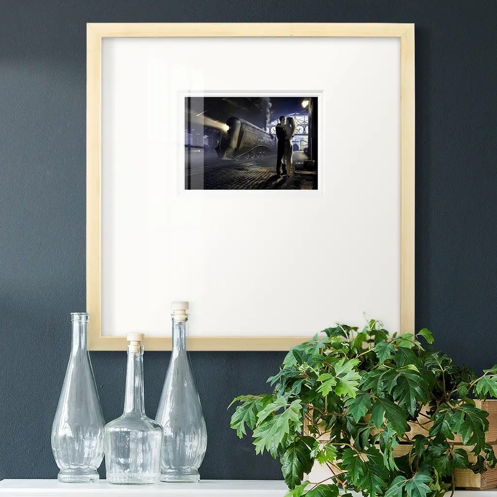 Train DepotPremium Framed Print A framed cold pressed paper print featuring superior double matting and quality frame. 2 SIZES AVAILABLE 16''X16''' - Overall Size 20''X20''' - Overall Size Each piece is made to order. Each piece comes with hanging hardware. Made in the USA Ready to Hang Giclee Paper Print Plexiglass Beveled Matt Board Double Matte Board