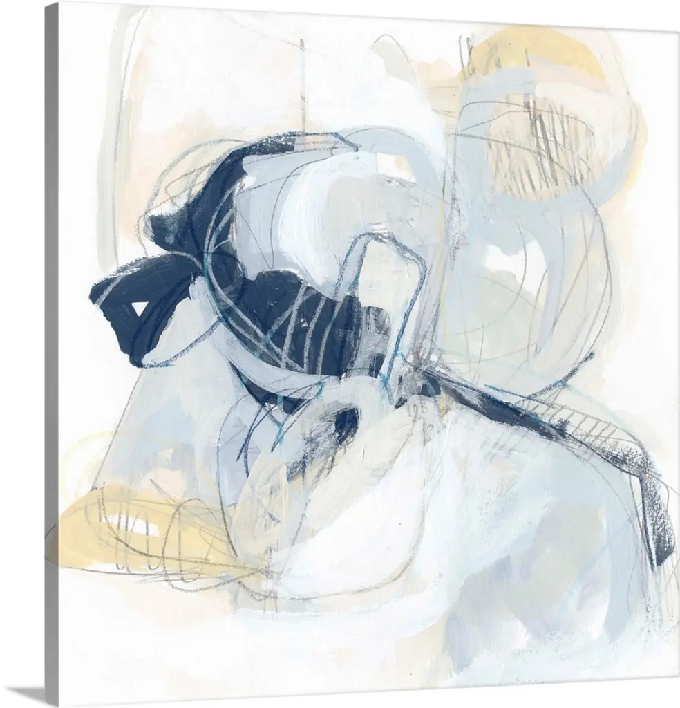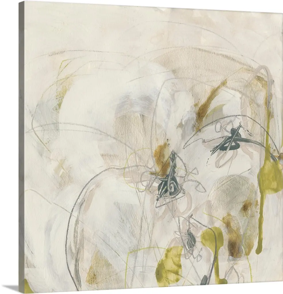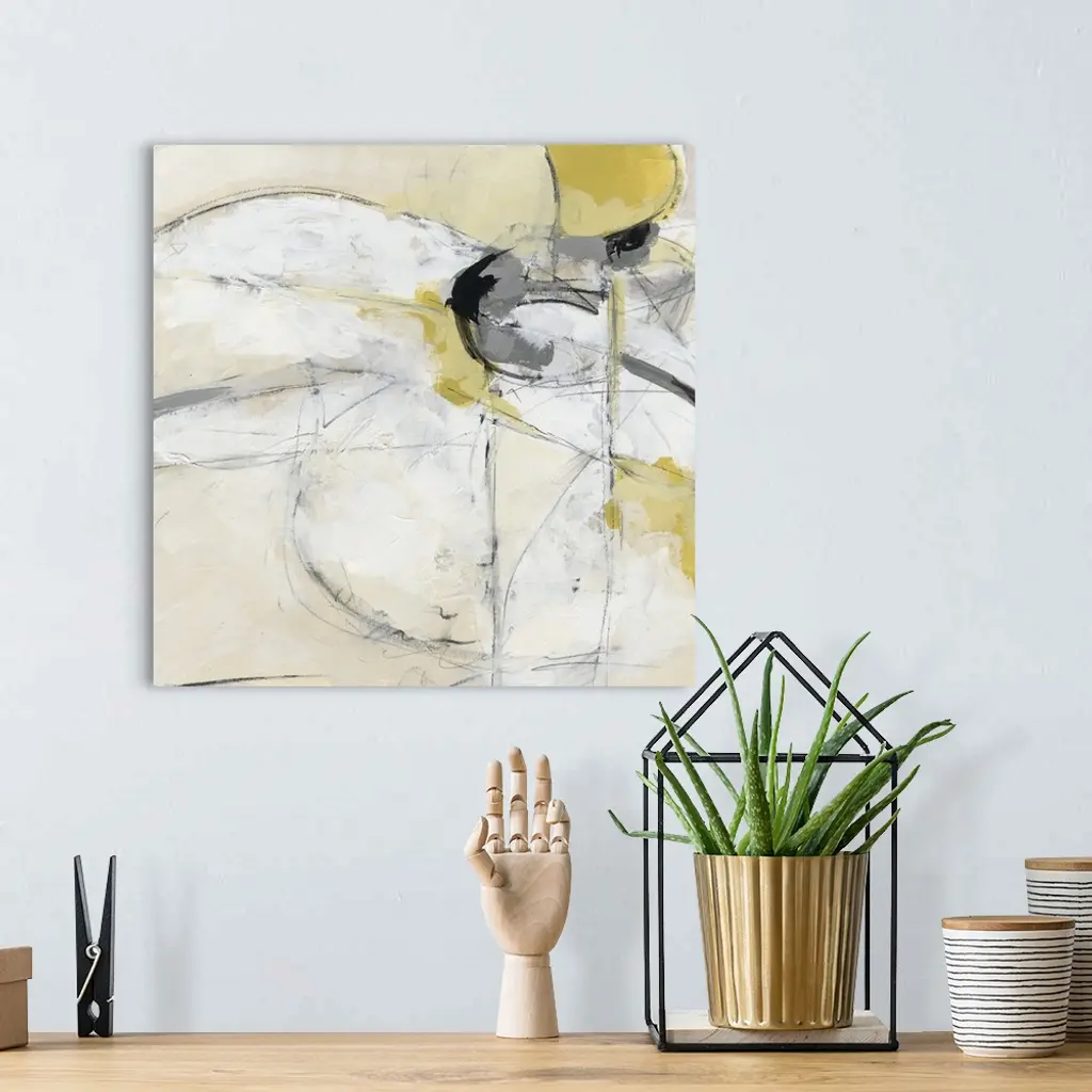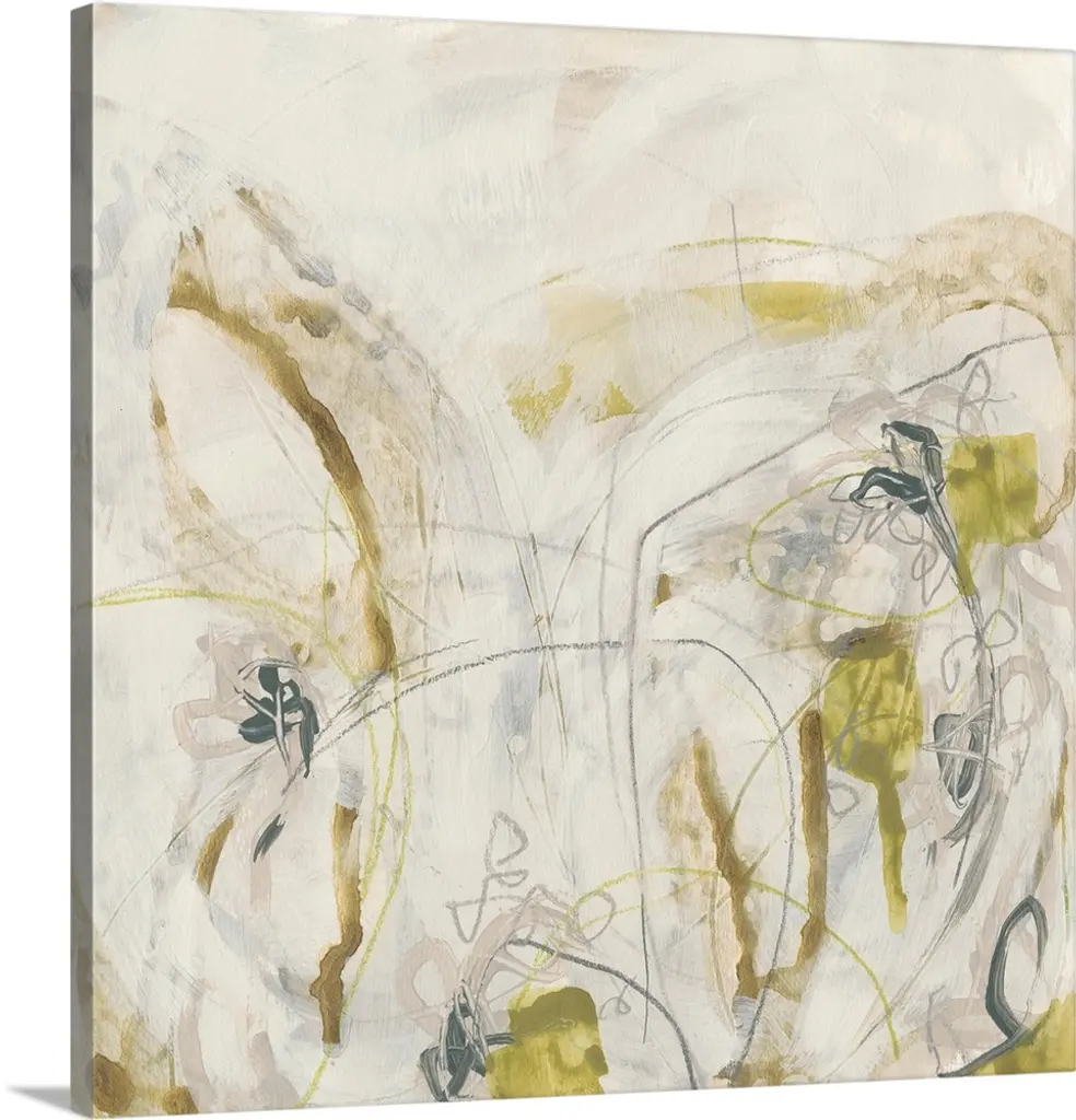 Energetic yellow brush strokes and gestural lines illustrate the dynamism in this contemporary artwork.