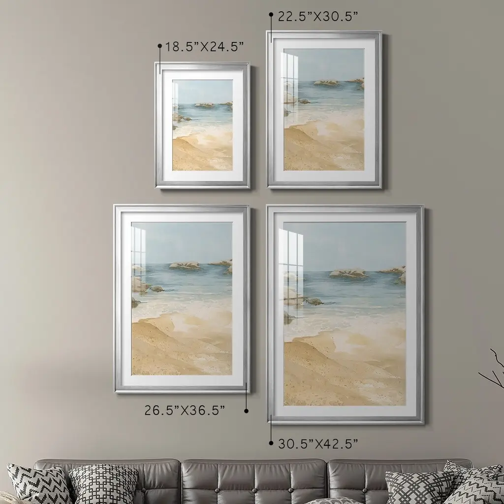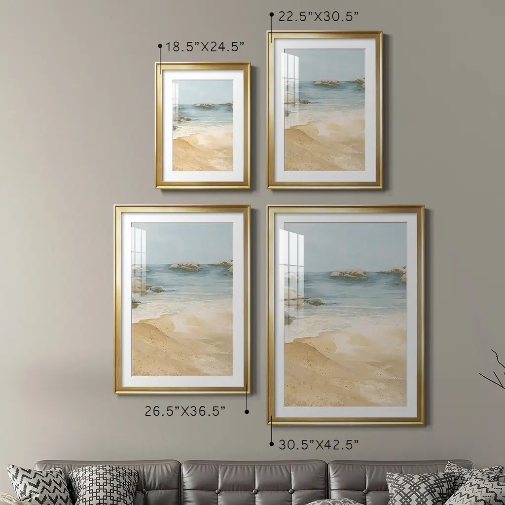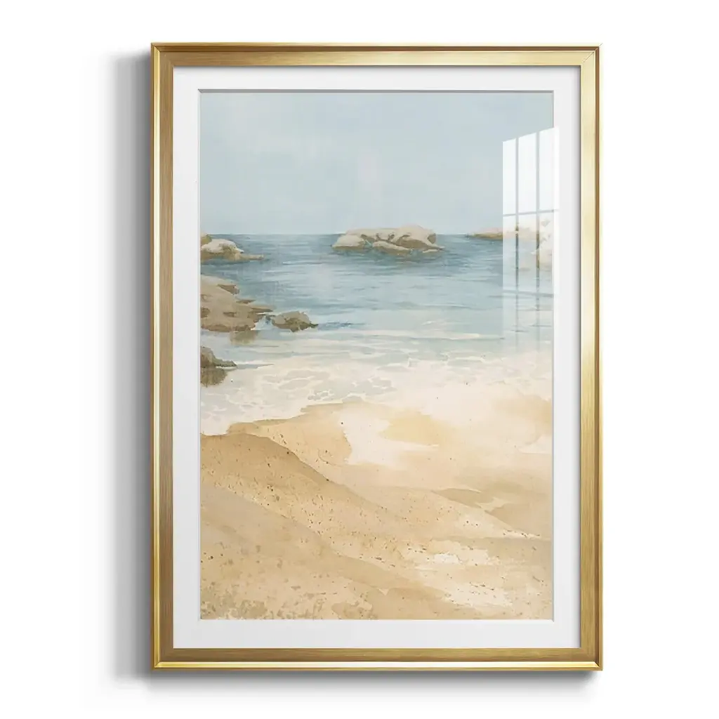 Tranquil Beach I Premium Framed Print - Ready to Hang A Premium Framed Print created to last. Framed in distressed wood and available in an array of sizes and colors Featuring a beveled a solid wood stretcher bar, each piece comes ready to hand 4 SIZES AVAILABLE 30.5''X42.5'' - Overall Size 26.5'X36.5'' - Overall Size 22.5''x30.5'' - Overall Size 18.5''x24.5'' - Overall Size Each piece is made to order. Each piece comes with hanging hardware. Made in the USA Ready to Hang Giclee Paper Print Acrylic Glass Beveled Matt Board