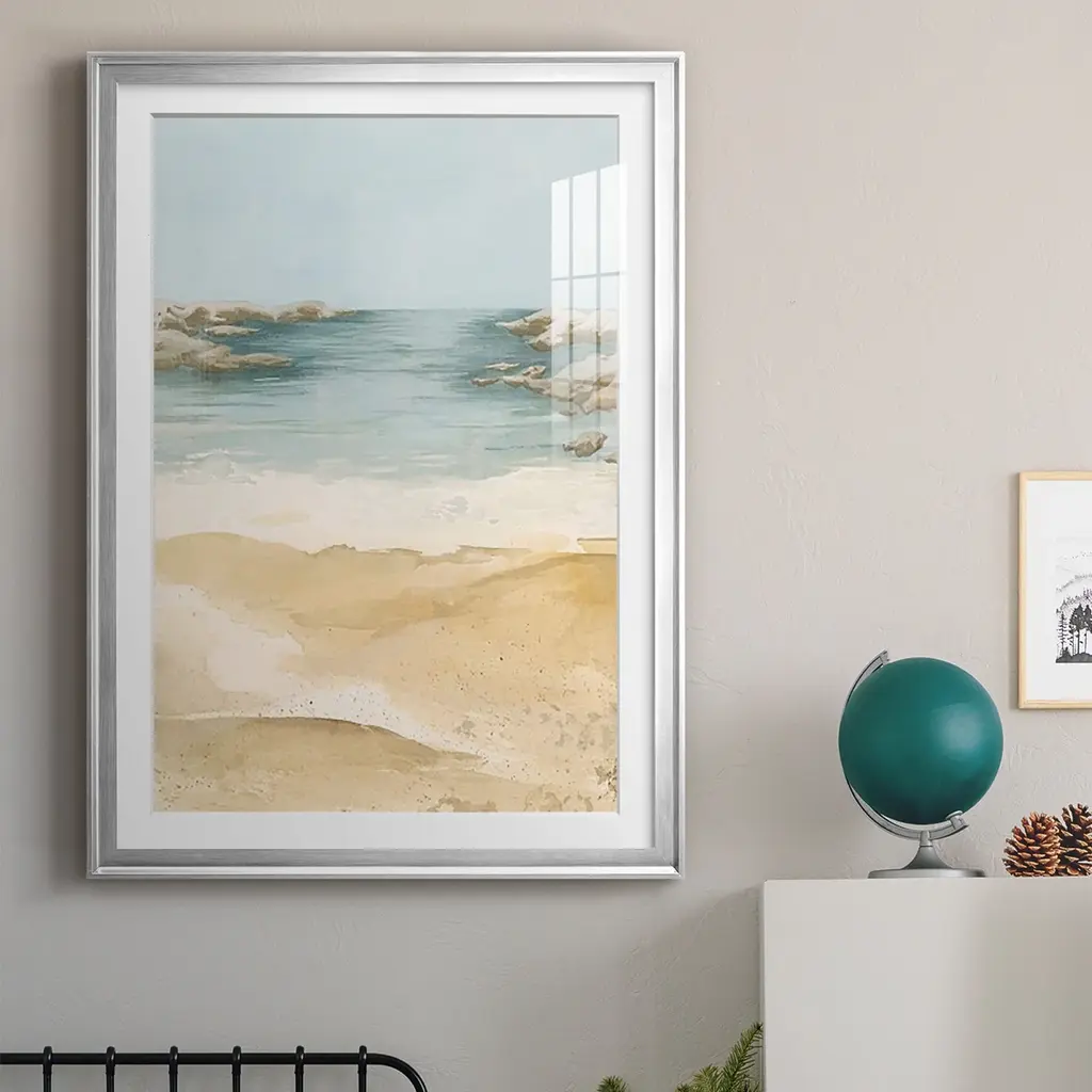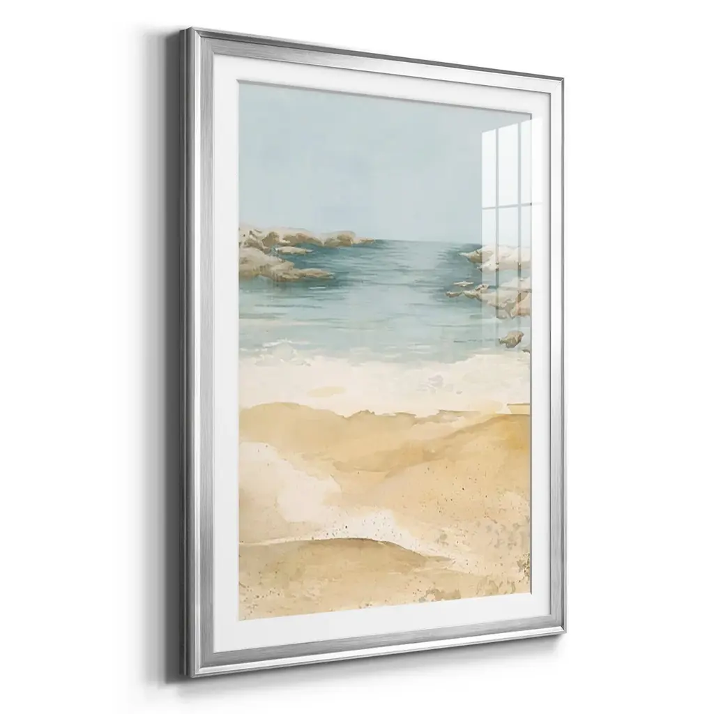Tranquil Beach II Premium Framed Print - Ready to Hang A Premium Framed Print created to last. Framed in distressed wood and available in an array of sizes and colors Featuring a beveled a solid wood stretcher bar, each piece comes ready to hand 4 SIZES AVAILABLE 30.5''X42.5'' - Overall Size 26.5'X36.5'' - Overall Size 22.5''x30.5'' - Overall Size 18.5''x24.5'' - Overall Size Each piece is made to order. Each piece comes with hanging hardware. Made in the USA Ready to Hang Giclee Paper Print Acrylic Glass Beveled Matt Board
