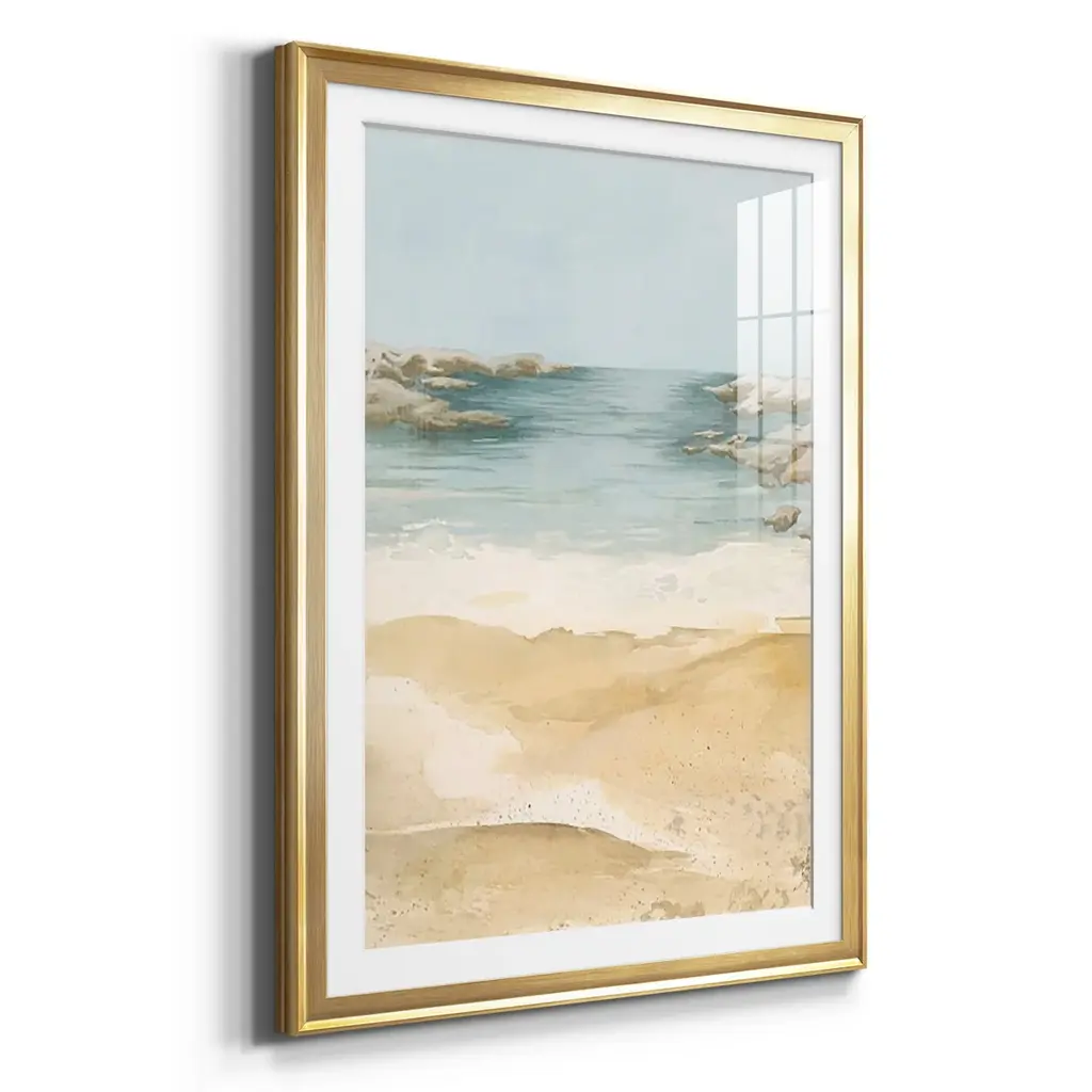 Tranquil Beach II Premium Framed Print - Ready to Hang A Premium Framed Print created to last. Framed in distressed wood and available in an array of sizes and colors Featuring a beveled a solid wood stretcher bar, each piece comes ready to hand 4 SIZES AVAILABLE 30.5''X42.5'' - Overall Size 26.5'X36.5'' - Overall Size 22.5''x30.5'' - Overall Size 18.5''x24.5'' - Overall Size Each piece is made to order. Each piece comes with hanging hardware. Made in the USA Ready to Hang Giclee Paper Print Acrylic Glass Beveled Matt Board