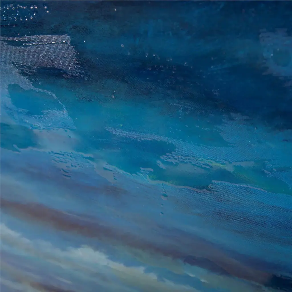 Enhance your space with the calming influence of the Calm Sea Hand-Painted Canvas Art. This captivating artwork brings the essence of a serene beach day into your home, inspired by the gentle waves and stress-free setting of the Keys. Hand-crafted with layered blue hues, the painting captures the movement of the ocean in a stunning, traditional design. Its square shape and sturdy wooden frame make it a striking addition to any room, offering a visual escape to a peaceful seashore. Carefully crafted on high-quality canvas, the Calm Sea artwork is hand-finished and painted, ensuring each piece is unique. Its soothing colors and traditional style make it an ideal piece for any decor, offering versatility and a timeless aesthetic. Whether you"™re looking for a statement piece or a subtle accent for your home or office, this artwork is a testament to tranquility and artful elegance. - • • Dimensions• • : 51.75H 51.75W 1.75D - • • Condition• • : Hand-Finished and Hand-Painted - • • Color• • : Blue - • • Material• • : Canvas, Wood - • • Style• • : Traditional - • • Shape• • : Square
