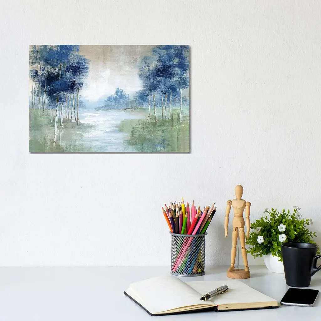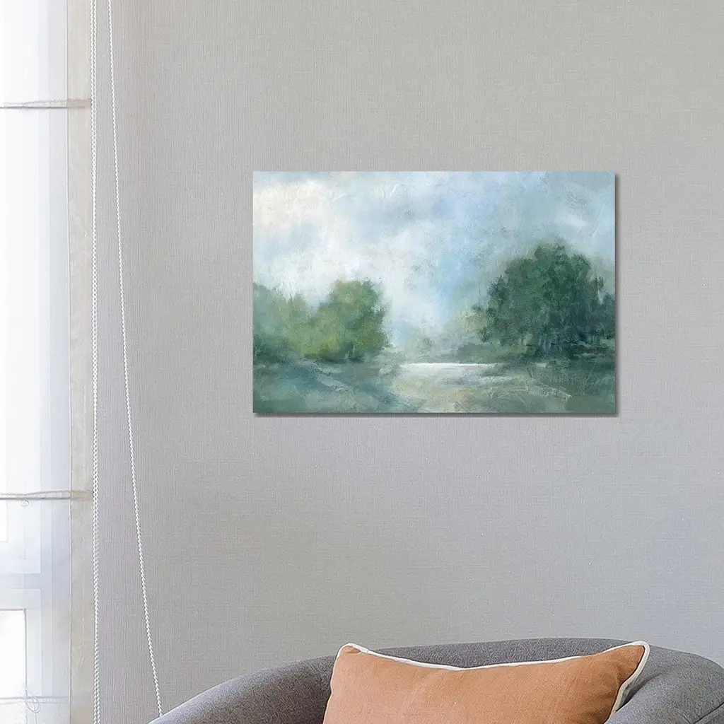 Get lost in a lush forest without ever leaving home! Characterized by hand embellished canvas in a black floater frame, this Tranquil Forest Wall Art brings a touch of nature to your walls.