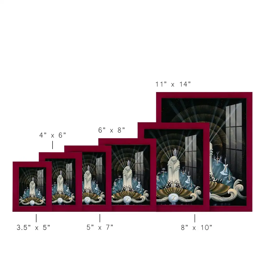 Tranquility -EZ SWITCH Framed Print w/glass-Cherry Red A delightful, framed print. Featuring a solid wood frame with real wood glass. This premium print is giclee quality. In addition, every frame features a removable back and table top stand. This allows you to change your art in the future or to just stand the art on a table for a new look. We are sure you'll enjoy our new series of EZ SWITCH Framed Art. Solid Wood Frame Real Glass Removable / Replaceable Art Built in Tabletop Stand Sizes range from 4x6 up to 12x15 - buy just one or pair them up as sets as you see fit.