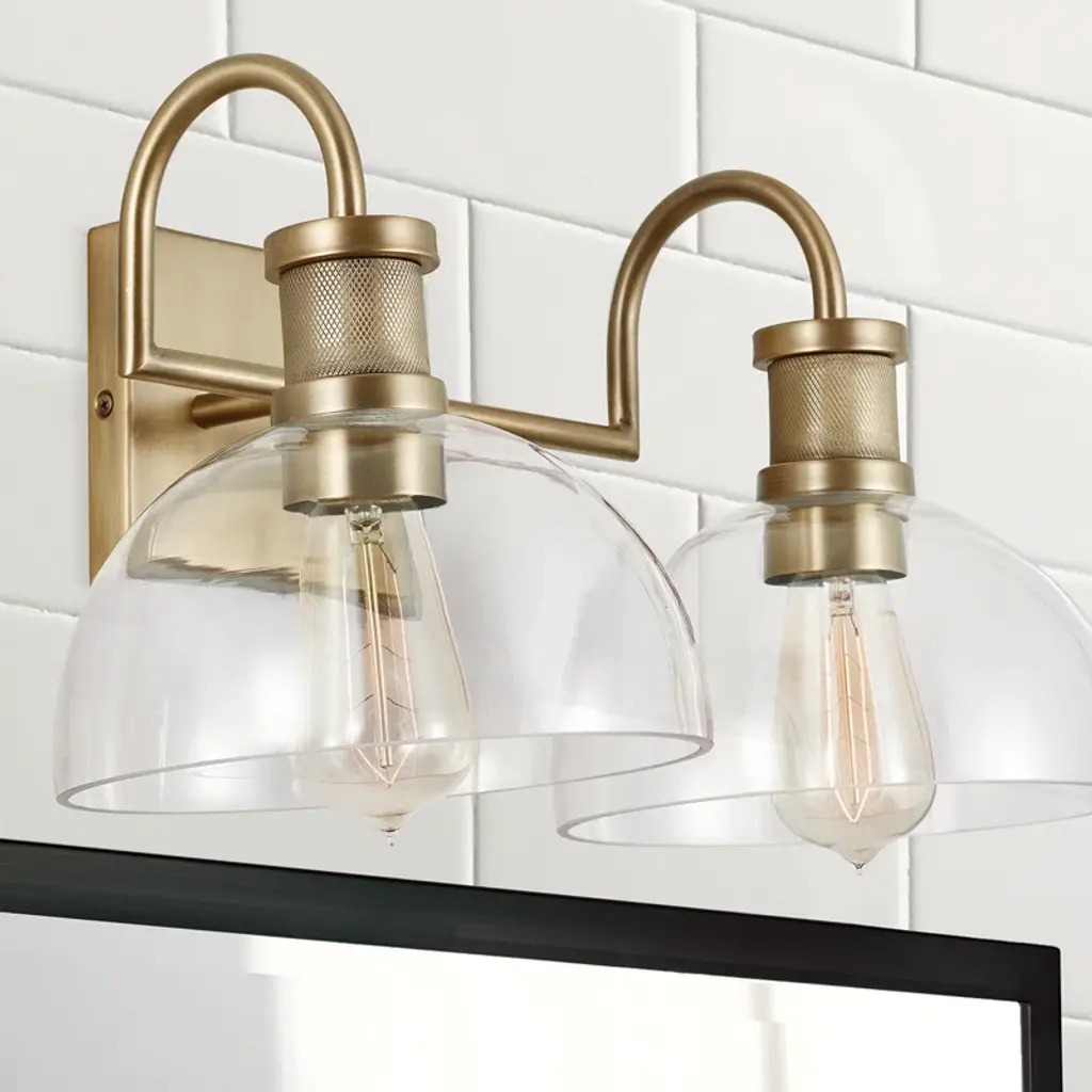 Vibes are created by the smooth domes and arched frame. The texture of the sockets gives this vanity a bit of character and industrial charm.