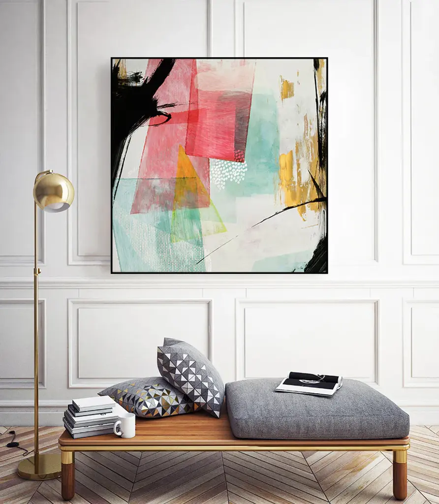 Your ready to hang artwork is printed on canvas then stretched and mounted to a 2-inch thick - hand stained black wood frame. Arrives at your door complete with an easy to use self-leveling hangking kit.