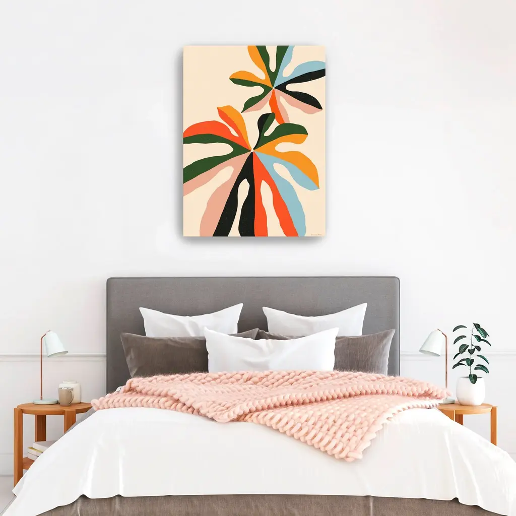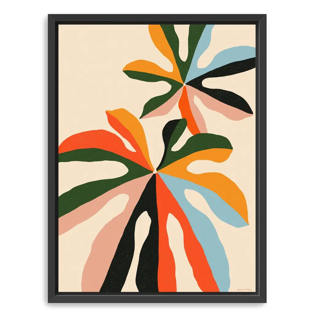 Introduce a breath of fresh air to your decor with this stunning abstract botanical canvas art print. Featuring an imaginative representation of botanical elements, this artwork harmoniously blends colors and shapes to create a captivating focal point.Available in black frame, dark walnut frame and oak frames, or as a frameless canvas. Our Gallery Wrap Canvas Prints are proudly assembled with high quality materials in California, USA. Each piece is printed on a thick, archival grade canvas using Giclee technology. It is then hand-stretched by our experienced artisans over solid pine bars, which will not warp over time. The final product is a piece personally crafted for you to confidently display on your wall. Care and Assembly: Ensure that the location of your piece has little to no exposure to heat, sunlight, and moisture. Wipe clean, only if needed. Each piece includes a sawtooth hanger to hang on your wall vertically.