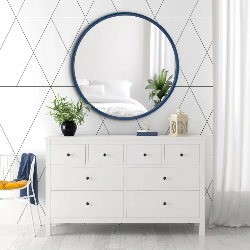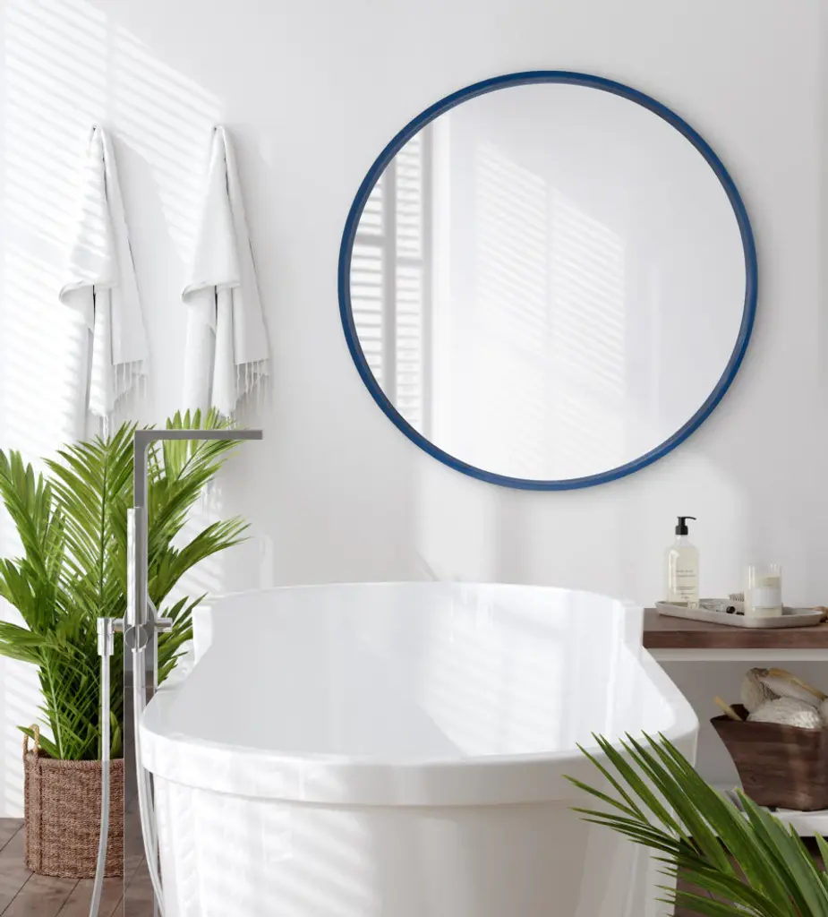 Travis Round Wood Accent Wall Mirror, Navy Blue 31.5 Diameter