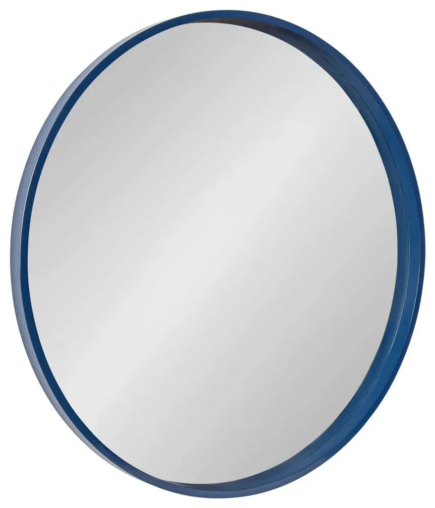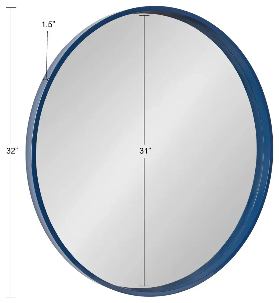 Make your small spaces more vibrant and open by adding the Travis mirror to your wall. Designed with modern simplicity in mind, the Travis has a trendy round frame with a slim profile, drawing attention toward the mirror''s center for an outstanding focal point. The frame has a navy blue finish, giving it a sophisticated coastal vibe that makes your room feel calm and cool. Its overall diameter is 31.5 inches, making the Travis an oversized accent that commands a presence and makes a bold statement. It''s perfect for creating a lovely wall display of multiples or standing on its own for a stunning conversation piece. Adding a mirror to your wall decor makes your space feel larger, spreading more light into dark corners and increasing vibrancy. If you are planning a bathroom renovation, this fabulous mirror is great in a single or large double vanity. Hang the lovely Travis wall mirror with no hassle or stress, thanks to the convenient metal wire attached to the back of its body.• TRENDY STYLE: The round shape gives the Travis a trendy look that blends into a variety of home decor schemes or wall displays• LOVELY FINISH: The navy blue finish has a fresh, coastal vibe, with a high-gloss look that makes it feel more modern• LARGE SIZE: The mirror overall diameter is 31.5 inches, making it a large, commanding statement that draws the eye and adds vibrancy to the room• VERSATILE: The round shape and large size make the Travis a fabulous addition to your decorative display or a welcoming bathroom mirror over your vanity• EASY TO HANG: Use the wire hanger attached to the back to hang the Travis mirror on the wall in no time