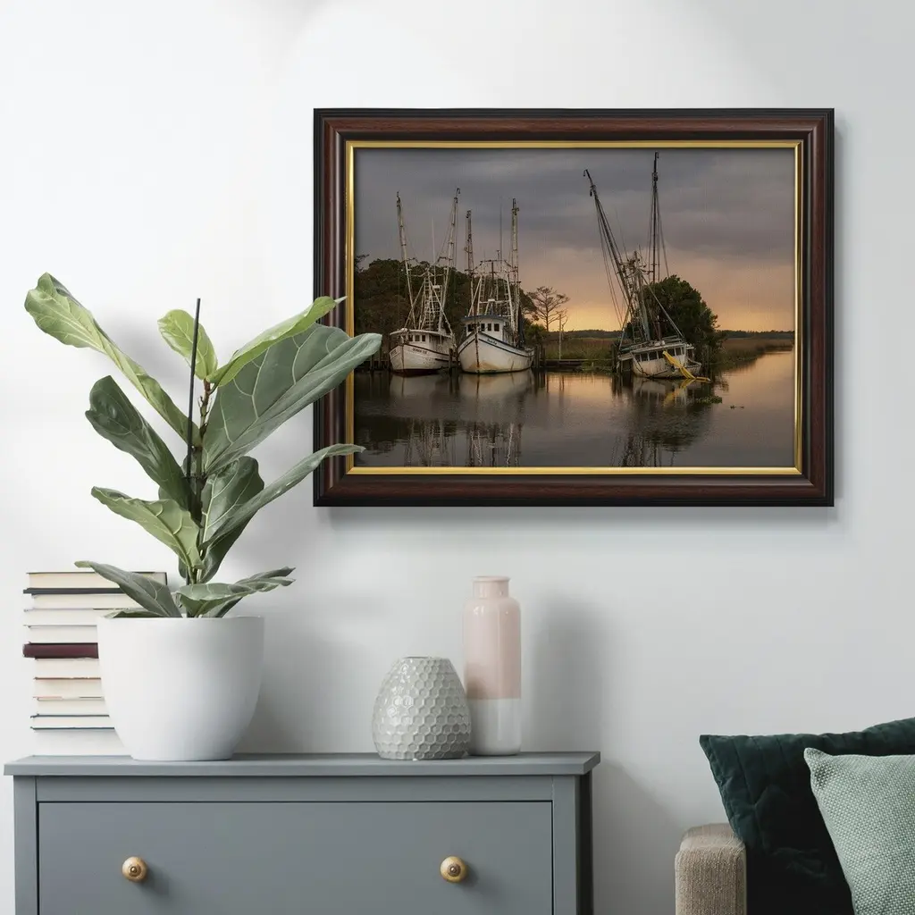 Trawlers Premium Framed Canvas- Ready To Hang - 16x20 - Mahogany