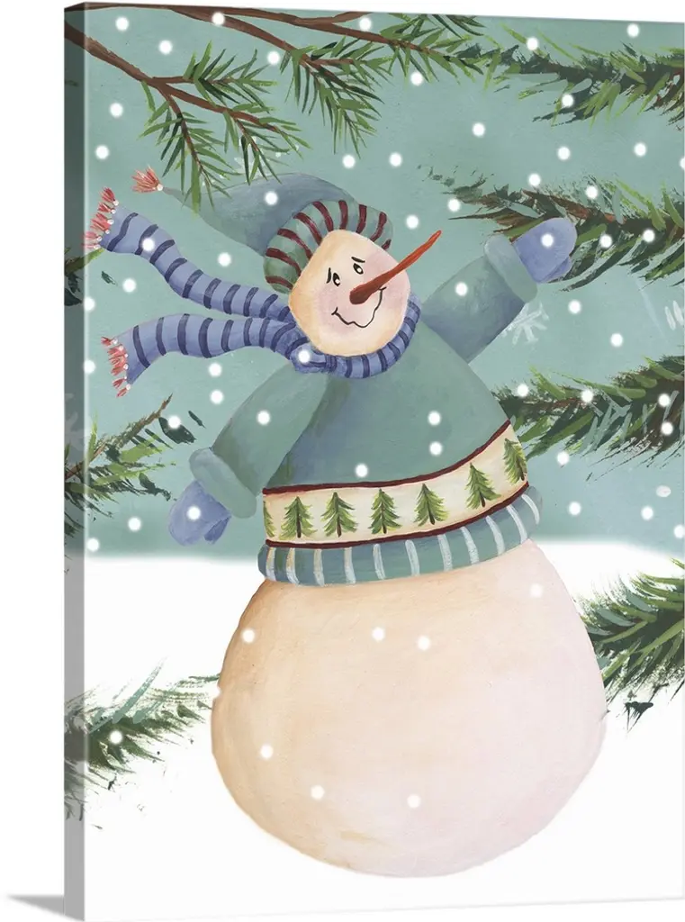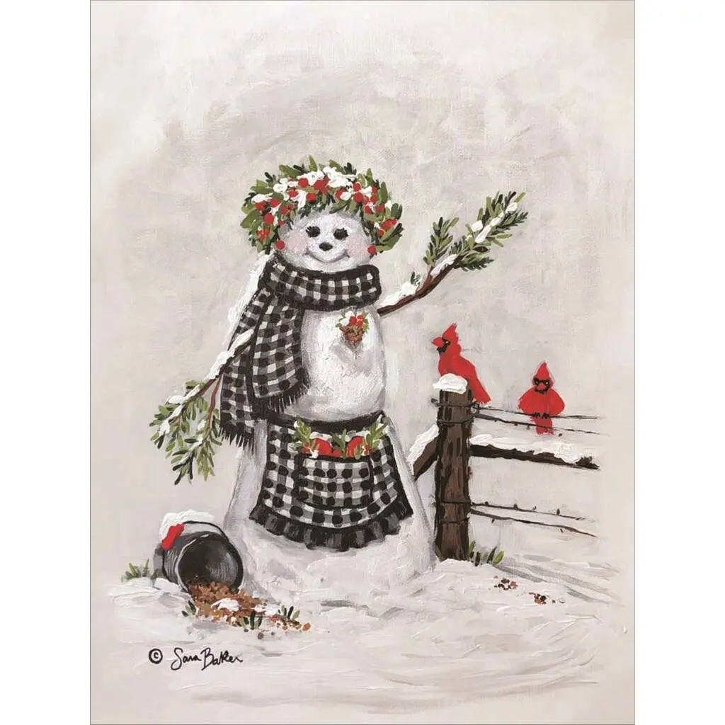 Country Snowman IV by Tre Sorelle Studios is a high quality piece of canvas artwork. The finished size of this piece is 16" X 20", and it has a depth 0.75". There is a UV protective coating over the entire image, and it is ready to hang on your wall with no hardware required.
