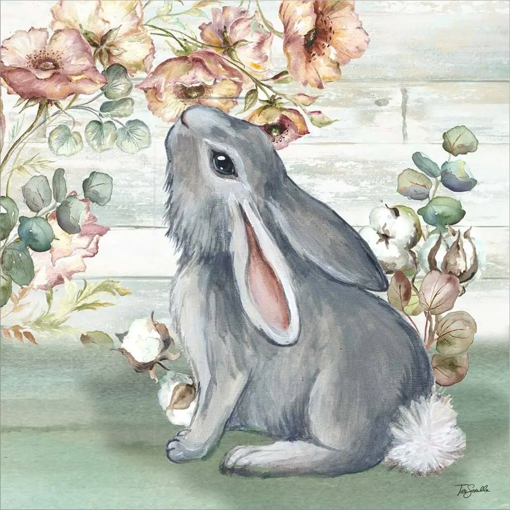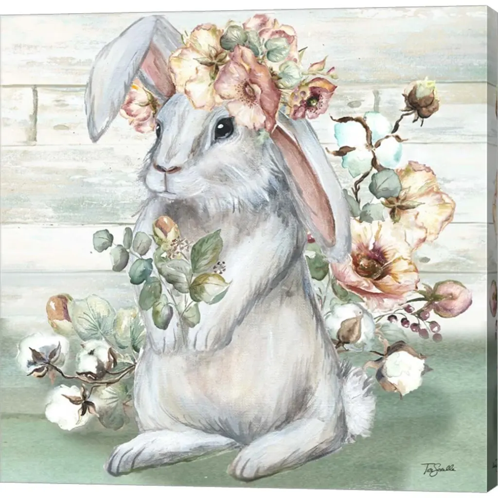 Farmhouse Bunny II by Tre Sorelle Studios is a high quality piece of canvas artwork. The finished size of this piece is 12" X 12", and it has a depth 1.5". There is a UV protective coating over the entire image, and it is ready to hang on your wall with a Standard Drywall Screw (not included. 100% Satisfaction Guaranteed.