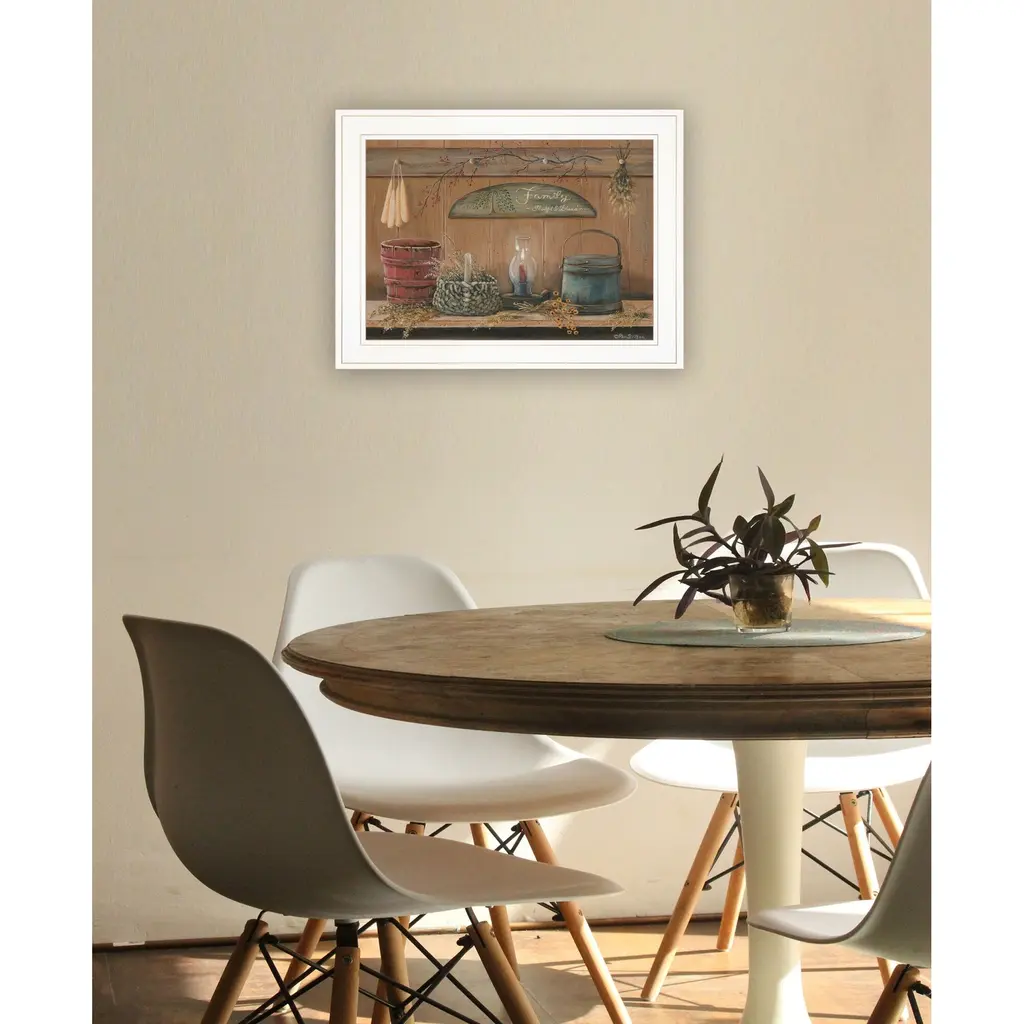 Bring some sizzle to your space with this eye-catching treasures on the shelf i 2 white framed print wall art. This print is a visual artistic expression that allows you to decorate your space in style. Reproduced for you on paper, this hanging decorative accent will be a trendy and fashionable way to dress your walls. Hang on your wall to add some up to date fashion and decoration. Utilize this opportunity to create a focal point in the room with this fabulous wall decor option. 15" H x 19" W x 1" D