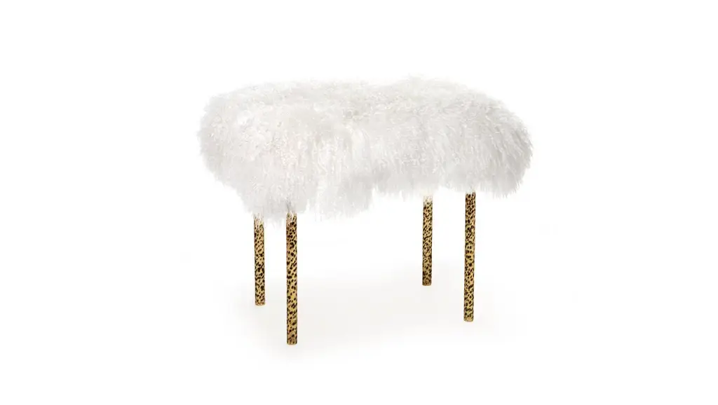 Tree Branches Bench by InsidherLandDimensions: D 42 x W 55 x H 48 cm.Materials: Mongolian Lamb fur Ref. White, hammered brass with patinated effect.7 kg.Available in other finishes.The original Tree Branches bench is entirely handcrafted in brass with a hammered technique similar to the irregular details of real branches. The top in Mongolian Lamb fur completes this creation by evoking the wild side of nature. Thought to be unique but versatile, the Tree Branches bench fits either modern or rustic interiors and it is also available in brushed brass, copper or steel finish.Created by Architect Joana Santos Barbosa in 2012, InsidherLand is a Portuguese brand of exclusive design. Drawn with the signature of the creator, the impressive range of contemporary luxury furniture, lighting, upholstery and accessories are connected to her personal memories and have been highlighted for their innovative and soulful designs.Joana explores several influences from travels around the world to define her own Land as a place that allows her to translate her perceptions into objects of art.The essence of InsidherLand is presented by two inspiring collections. Beyond Memory Collection is deeply influenced by organic forms of nature, legends and traditional cultures, as for the Identity Collection is molded by forms of Architecture and Art. Both collections are designed as a dialog in which nature meets strong architectural lines to create relaxed and sophisticated interiors surrounded by natural materials and meaningful art pieces.Being positioned in strategic markets of high-end luxury decoration, InsidherLand team is proud of working with the best architects and interior design studios from all over the world who seek for handmade exclusive objects that arouse emotions and stand out in exquisite spaces.We are dedicated with love and enthusiasm into every creation to surprise a sensitive but demanding public. Using the expertise of traditional craft techniques, all creations are made by the hands of Portuguese master craftsmen and jewelers who wisely sculpt them in noble materials, finalizing every detail with elegance and perfection.