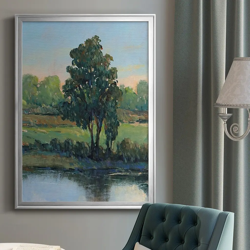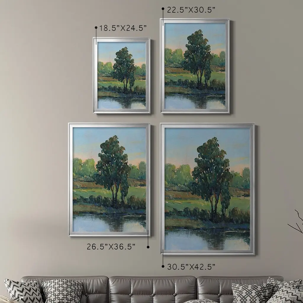 Tree by the Riverbank I Premium Framed Print - Ready to Hang A Premium Framed Print created to last. Framed in distressed wood and available in an array of sizes and colors Featuring a beveled a solid wood stretcher bar, each piece comes ready to hand 4 SIZES AVAILABLE 30.5''X42.5'' - Overall Size 26.5'X36.5'' - Overall Size 22.5''x30.5'' - Overall Size 18.5''x24.5'' - Overall Size Each piece is made to order. Each piece comes with hanging hardware. Made in the USA Ready to Hang
