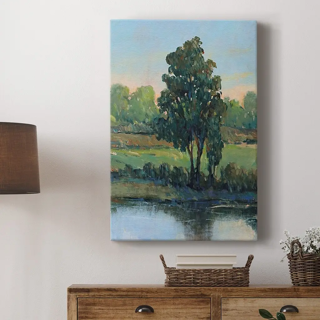 Tree by the Riverbank I Premium Gallery Wrapped Canvas - Ready to Hang A premium hand stretched gallery wrapped canvas print created to last. Featuring a beveled a solid wood stretcher bar, each piece comes ready to hand 6 SIZES AVAILABLE 8''X12'' - Overall Size 12''X18'' - Overall Size 18''X27'' - Overall Size 24''x36'' - Overall Size 32''x48'' - Overall Size 40''x60'' - Overall Size Each piece is made to order. Built to Last Each piece comes ready to hang Solid wood stretcher Fade and Water resistant Made domestically