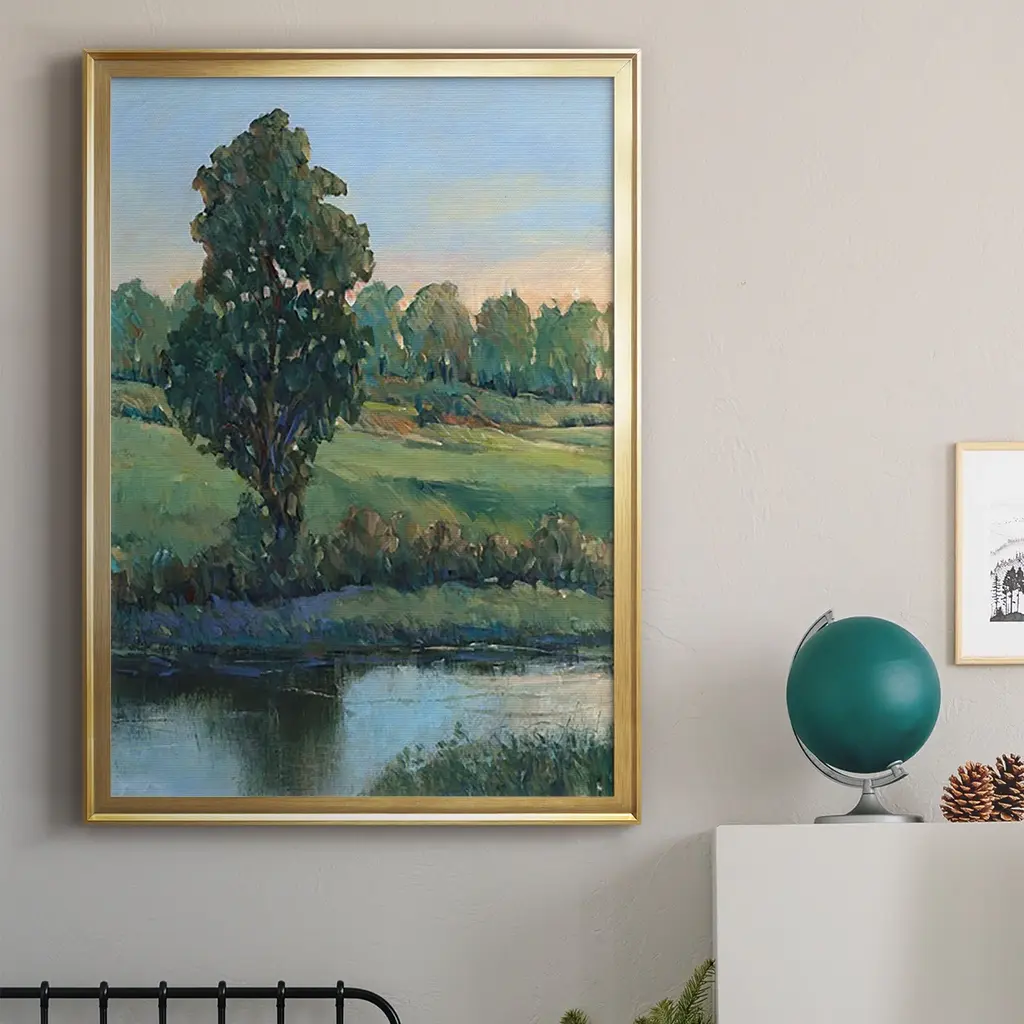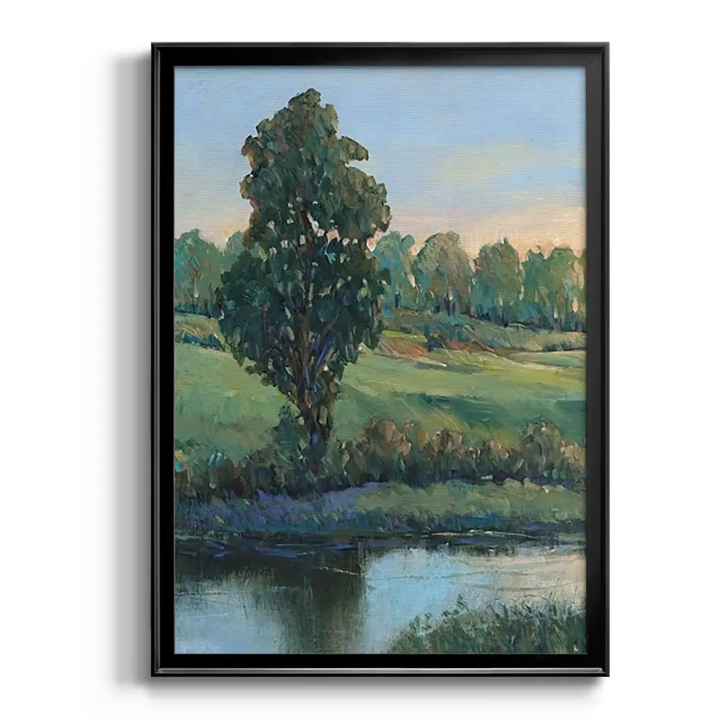 Tree by the Riverbank II Premium Framed Print - Ready to Hang A Premium Framed Print created to last. Framed in distressed wood and available in an array of sizes and colors Featuring a beveled a solid wood stretcher bar, each piece comes ready to hand 4 SIZES AVAILABLE 30.5''X42.5'' - Overall Size 26.5'X36.5'' - Overall Size 22.5''x30.5'' - Overall Size 18.5''x24.5'' - Overall Size Each piece is made to order. Each piece comes with hanging hardware. Made in the USA Ready to Hang