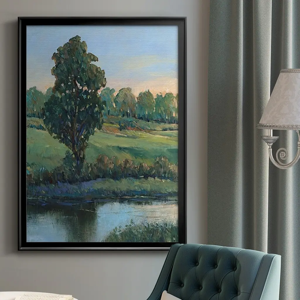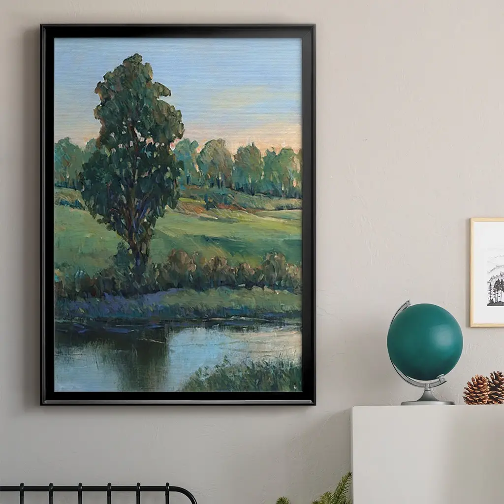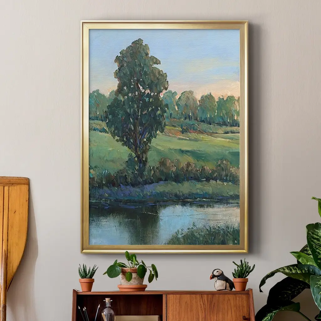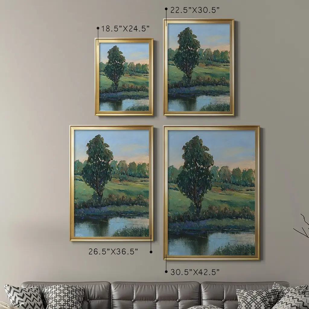 Tree by the Riverbank II Premium Framed Print - Ready to Hang A Premium Framed Print created to last. Framed in distressed wood and available in an array of sizes and colors Featuring a beveled a solid wood stretcher bar, each piece comes ready to hand 4 SIZES AVAILABLE 30.5''X42.5'' - Overall Size 26.5'X36.5'' - Overall Size 22.5''x30.5'' - Overall Size 18.5''x24.5'' - Overall Size Each piece is made to order. Each piece comes with hanging hardware. Made in the USA Ready to Hang