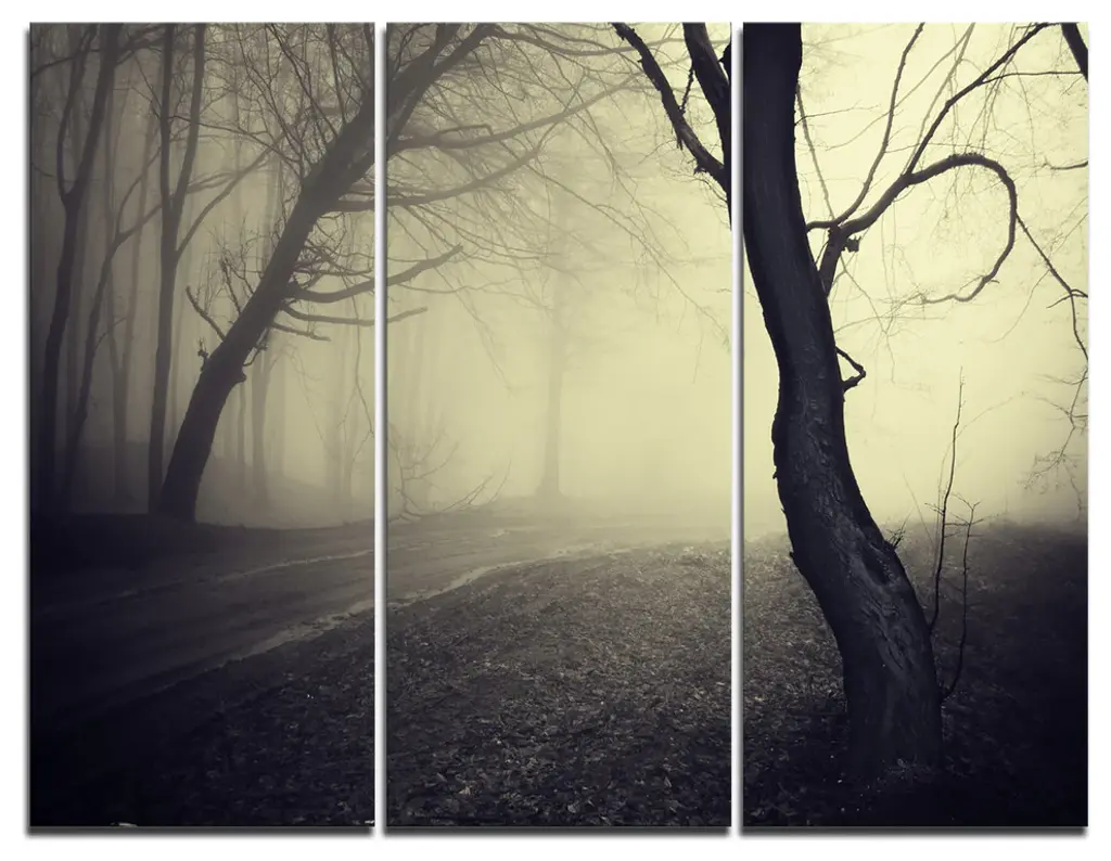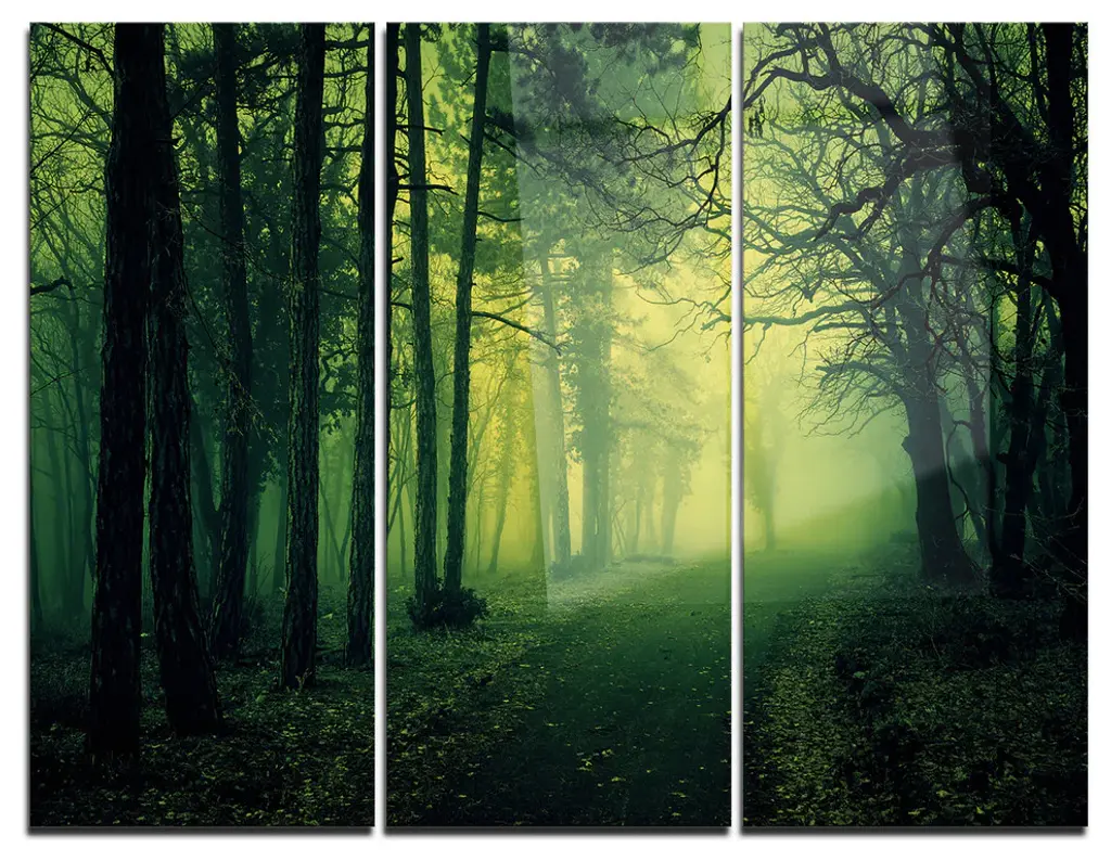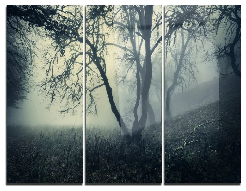 "Tree In Foggy Dark Forest" Photo Metal Wall Art, 3 Panels, 36"x28"