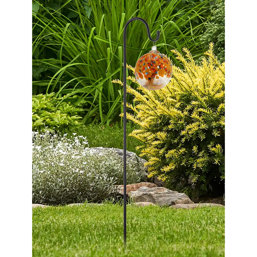 At Dale Tiffany, we strive to keep abreast of the latest home décor trends. As a result, we are pleased to present our Tree of Life Collection. The collection features an impressive array of Hand Blown Art Glass Ornaments in a variety of sizes and colors to suit every taste and décor. They are an effortless way to add a splash of color to any home, inside and out. Each Ornament is painstakingly hand blown using Favrile Art Glass. Each Ornament includes a clear glass loop at its top to facilitate hanging in any of the available stands, hangers, and garden stakes. Our hand blown process embeds color within the glass itself, which means that no 2 pieces are exactly alike and ensures yours are a dazzling one of a kind 3-dimensional art piece you will proudly display in your home or garden for many years to come. Due to the nature of handcrafted art glass, colors, sizes and patterns may vary slightly. (Stand or Metal Hanger Not Included)"Aura": an abstract tree design comprised of warm shades of red, blue and amber that create a cozy autumn feeling. Also available in 4“, and 6“ diameters.