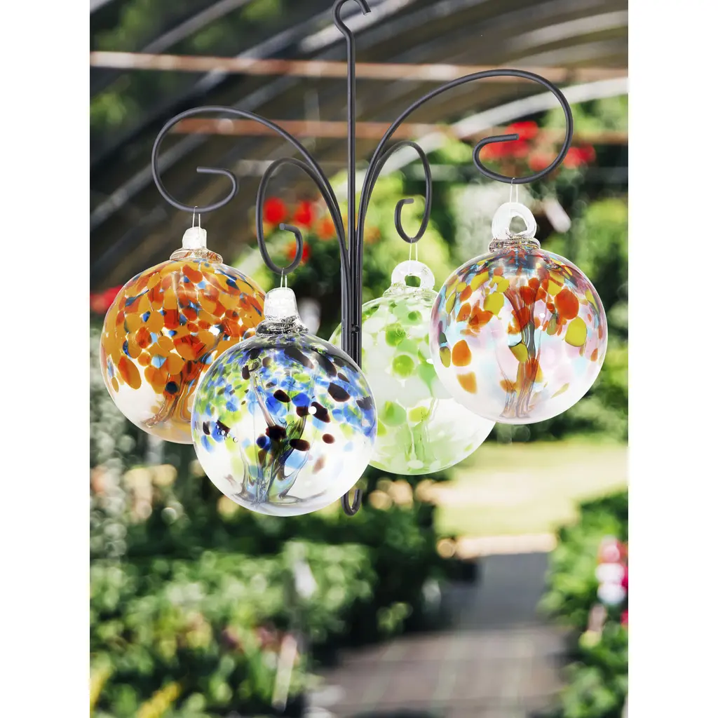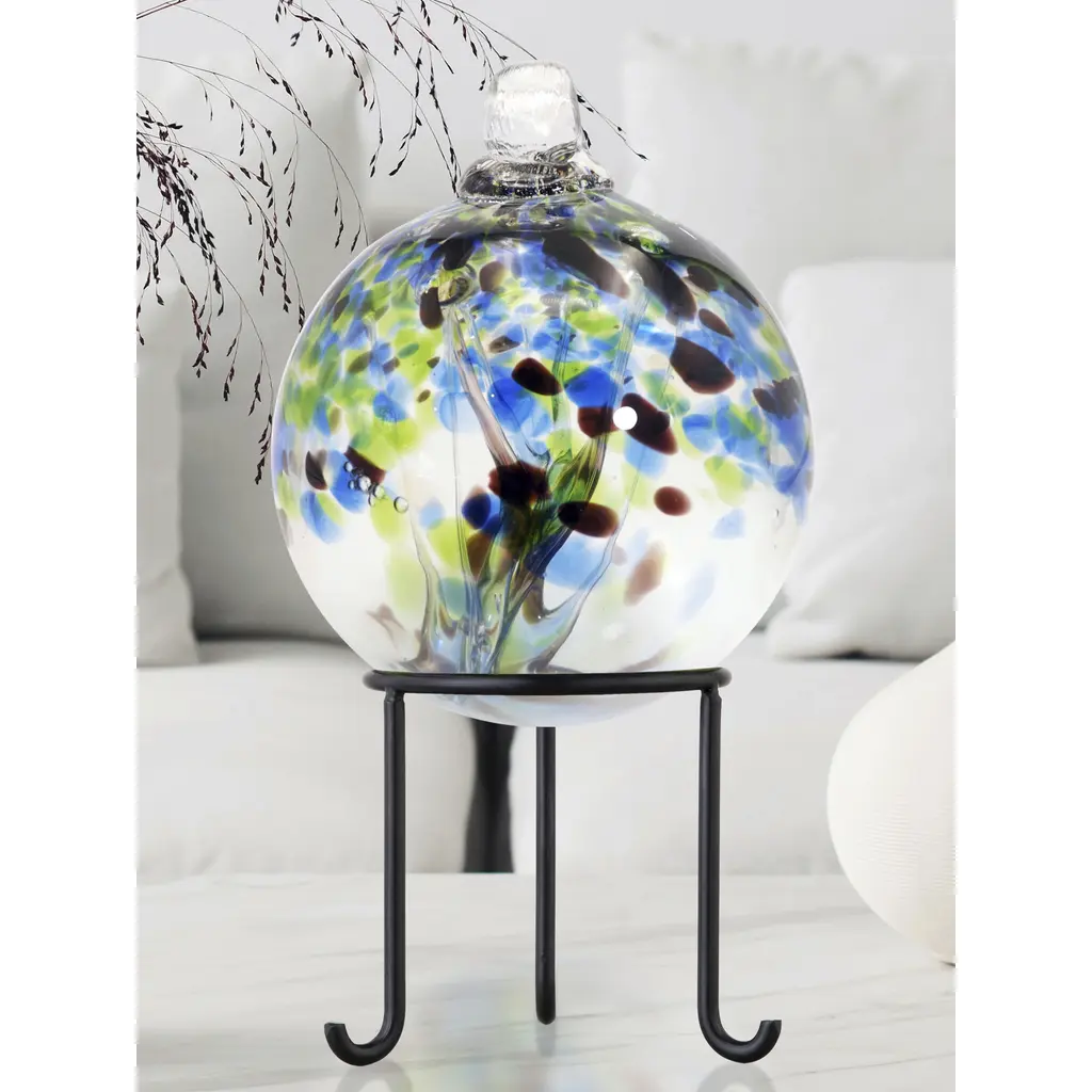 At Dale Tiffany, we strive to keep abreast of the latest home décor trends. As a result, we are pleased to present our Tree of Life Collection. The collection features an impressive array of Hand Blown Art Glass Ornaments in a variety of sizes and colors to suit every taste and décor. They are an effortless way to add a splash of color to any home, inside and out. Each Ornament is painstakingly hand blown using Favrile Art Glass. Each Ornament includes a clear glass loop at its top to facilitate hanging in any of the available stands, hangers, and garden stakes. Our hand blown process embeds color within the glass itself, which means that no 2 pieces are exactly alike and ensures yours are a dazzling one of a kind 3-dimensional art piece you will proudly display in your home or garden for many years to come. Due to the nature of handcrafted art glass, colors, sizes and patterns may vary slightly. (Stand or Metal Hanger Not Included)"Mystic": a bold abstract tree of life pattern in variegated shades of blue, dark brown and green against a clear glass background. Also available in 3“ (2PK), 4“, and 10“diameters.