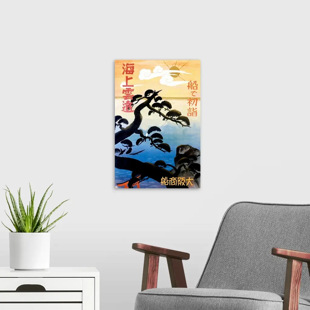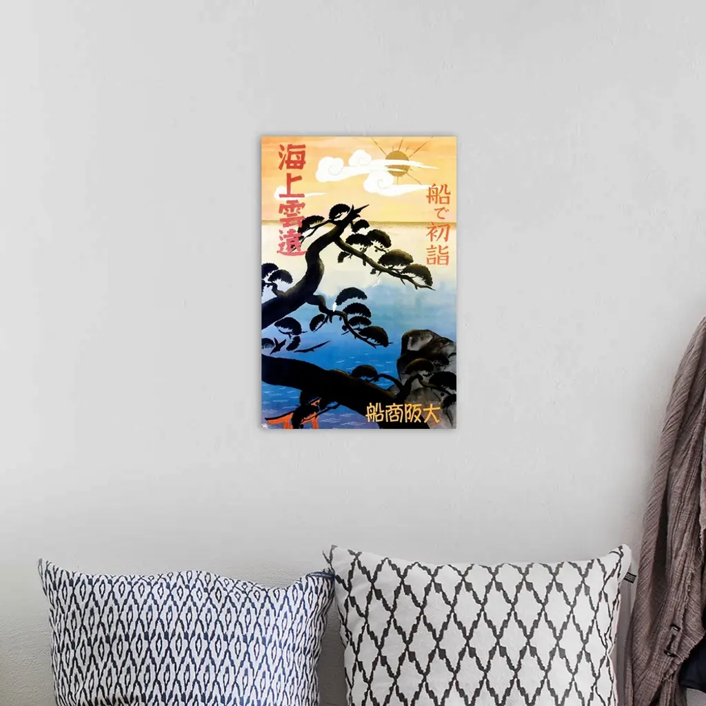 Tree Silhouette Over Ocean, Japan, Vintage Poster