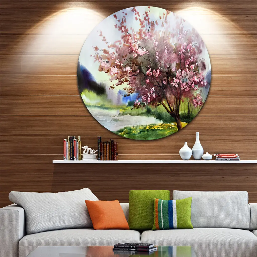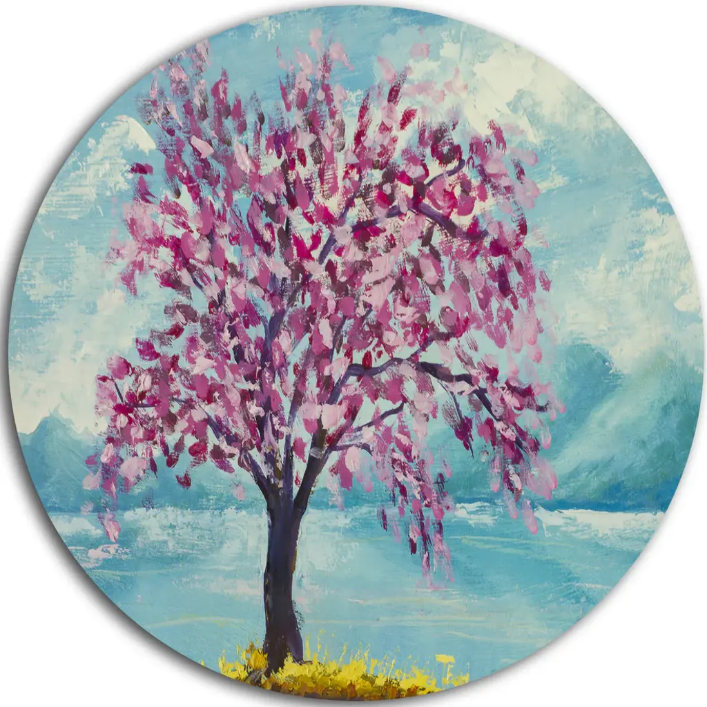 Bring Contemporary Abstraction to your home with this large Circle Metal wall art. This Tree with Spring Flowers Metal Artwork makes it the focal point of any room or office. - White Gloss Coating ensures colors are extra vibrant with light reflection.- Aluminum grade Sheet Metal with 1 inch mounting frame on the back giving the illusion that the artwork is floating on the wall..- Mounting Brackets are included along with instructions.- High Quality Digital images are created directly into a glossy aluminum panel producing a stunning and captivating print into the glossy finish of the metal.- Water, Fire and Scratch resistant HD Aluminum panels.- Looks better than any photo paper and guaranteed to last at least 20 years- Easy to clean with a microfiber cloth. Colors are far superior to regular Canvas Art. - Easy to Hang