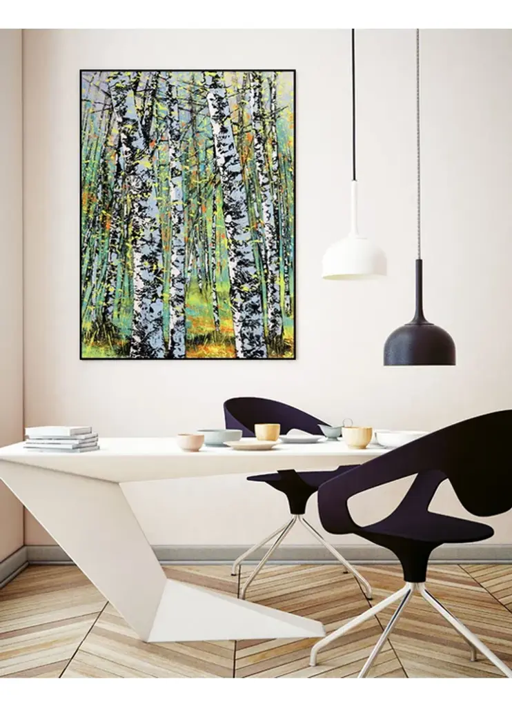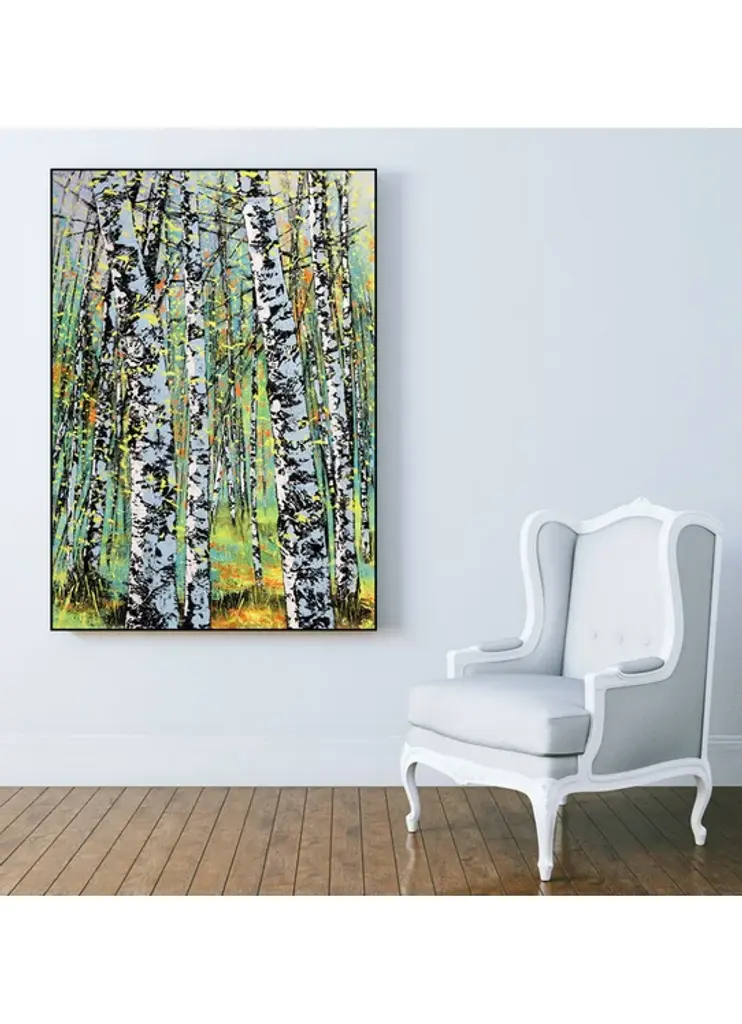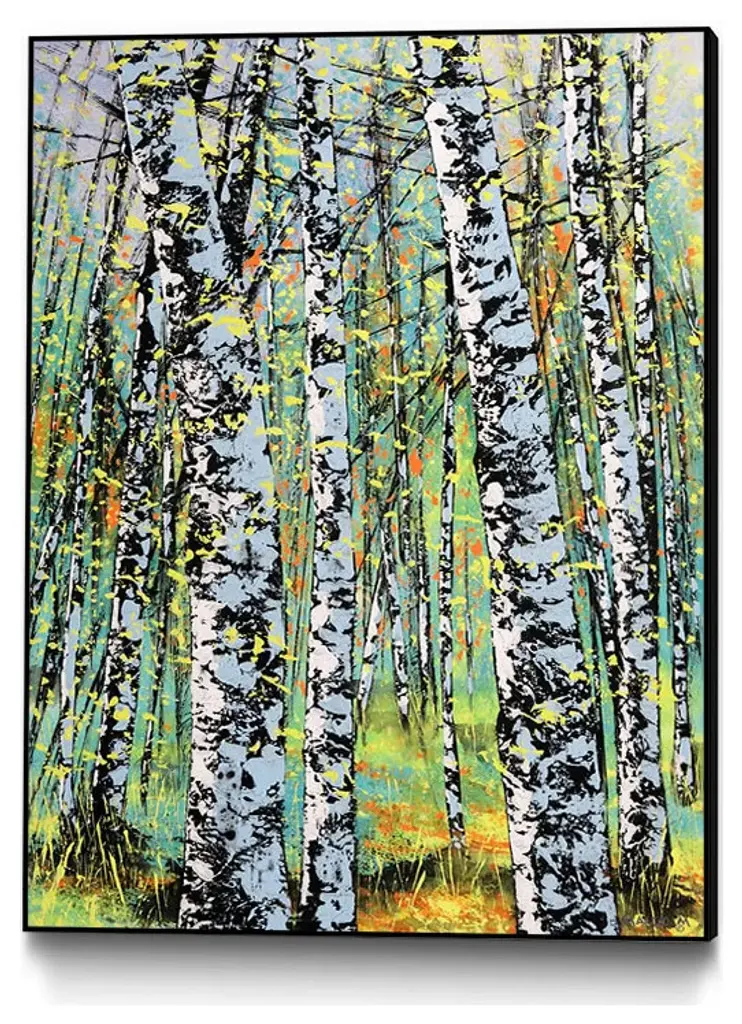 Your ready to hang artwork is printed on canvas then stretched and mounted to a 2 inch-thick, hand-stained black wood frame. Arrives at your door complete with an easy to use self-leveling hanging kit.