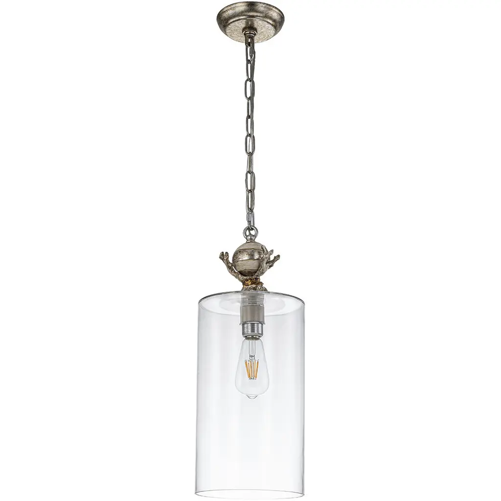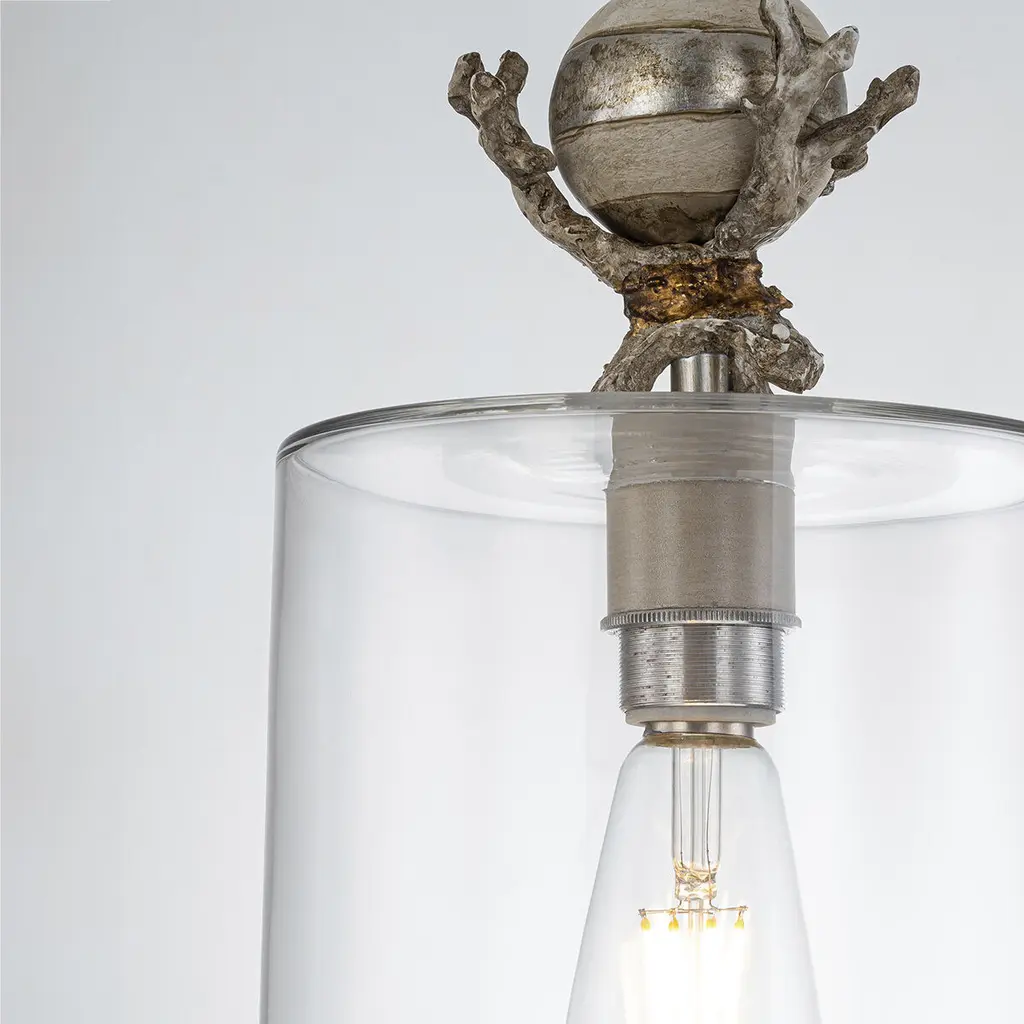 Trellis 8" Mini Pendant provides an organic sculptured design with hand painting and silver leaf. The heavy glass below offers a clean vertical line for the single bulb inside. A classic Lucas McKearn design, combining sculpture, hand finish and functio