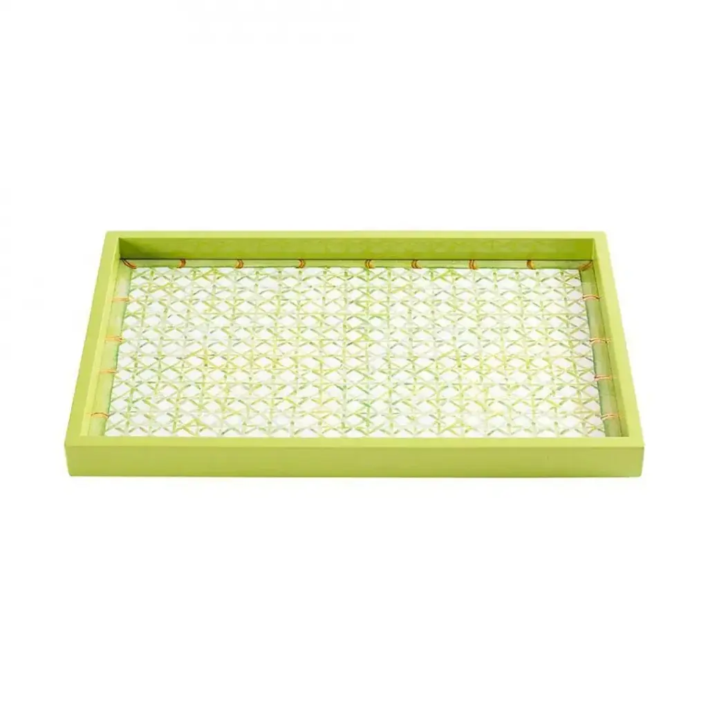 Trellis Green Lacquer Small Rectangular Tray 8 7/8" X 13 3/4"