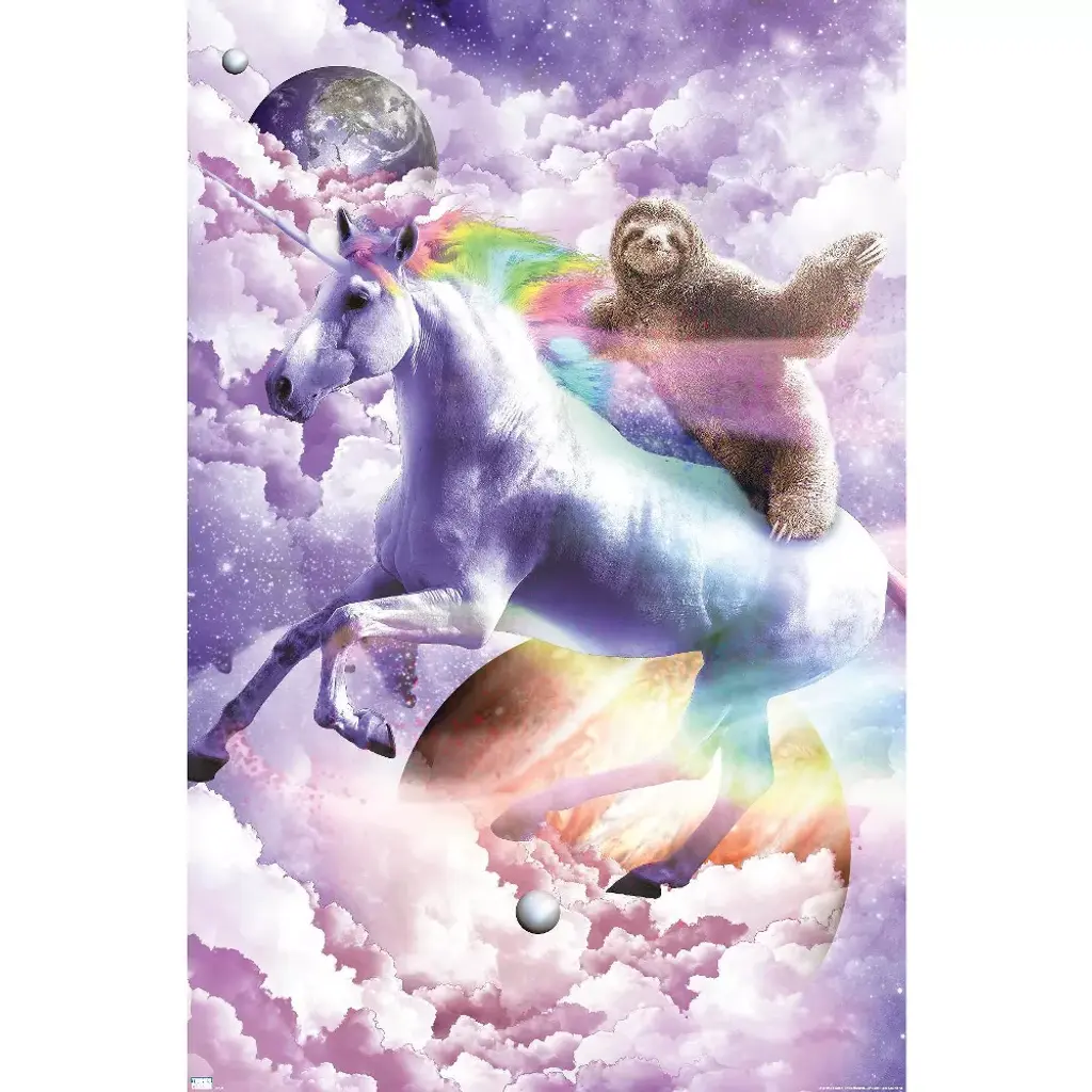 Trends International James Booker - Epic Space Sloth Riding On Unicorn Framed Wall Poster Prints
