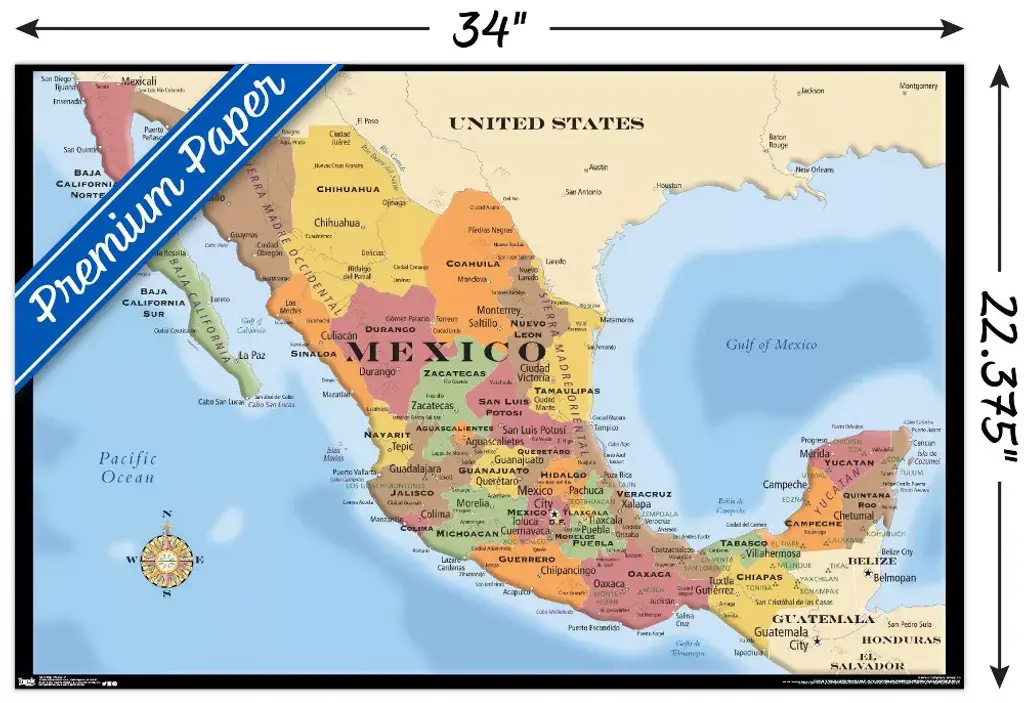 Trends International Map - Mexico Unframed Wall Poster Prints