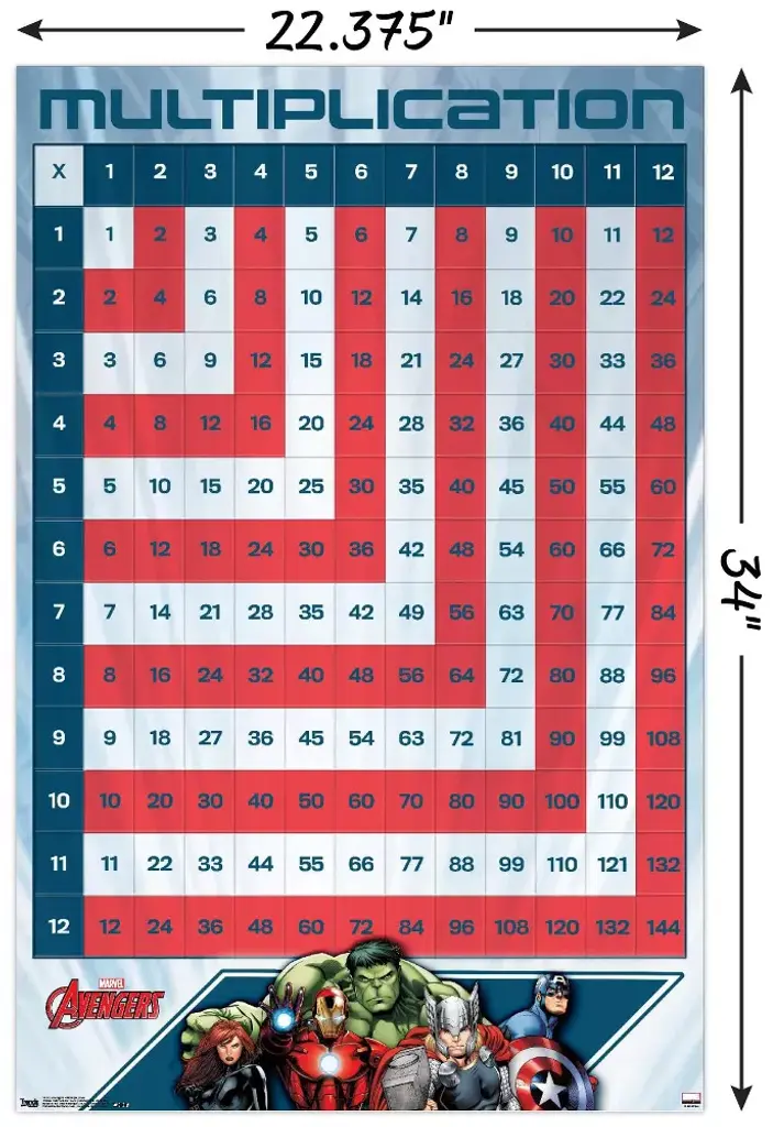 Trends International Marvel Comics - Avengers - Numbers - Multiplication Table Unframed Wall Poster Prints
