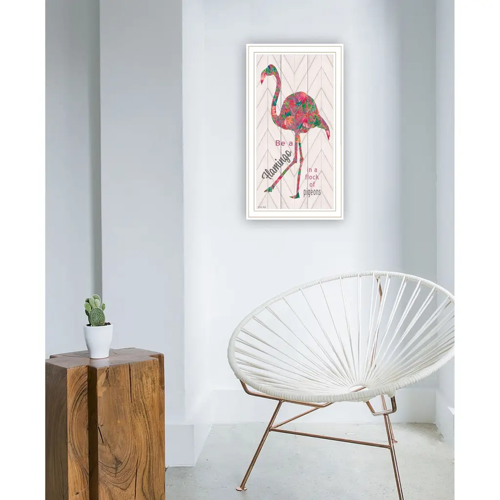 Trendydecor4u "Be A Flamingo" Framed Print Wall Art - White