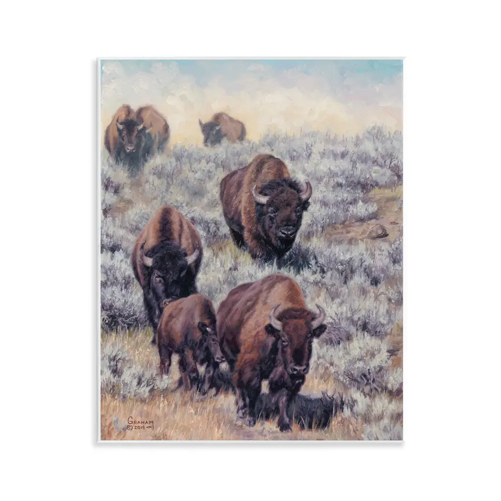 "Bison Herd 1" is by Artisan Cindy Jacobs. This framed wall art features Bison - The beast of the wild west! They roam the plains, and endure the hardships. Our products are proudly made by skilled American workers. The surface of our framed art is textured with a fade resistant coating, so no glass is necessary. A vegetable-based glue is used in the production of our products, and our frames are crafted from 100% recycled material, in keeping with our environmentally friendly approach toward manufacturing. Arrives ready to hang. Crafted with utmost care and precision by skilled American crafters, this artwork is a testament to their unwavering commitment to quality. Each brushstroke exudes passion and dedication, bringing the scene to life in vivid detail. The fade-resistant texture coating ensures that the vibrant colors will remain intact, preserving the canvas-like appearance for years to come. Investing in a piece that is truly one-of-a-kind. No other artwork can capture the same blend of tranquility, elegance, and wanderlust. It is a testament to your discerning taste and appreciation for the beauty that nature and art can conjure together. Brought to you by Continents Apart.