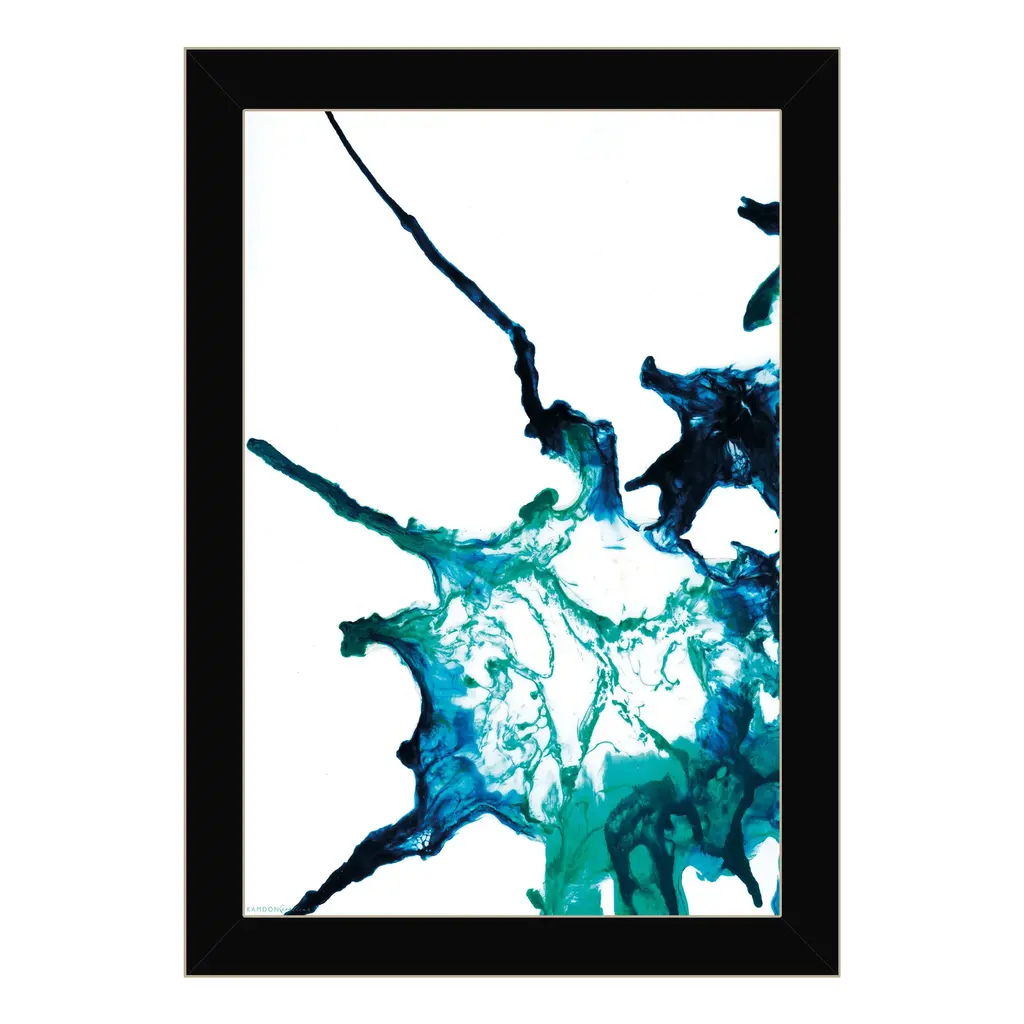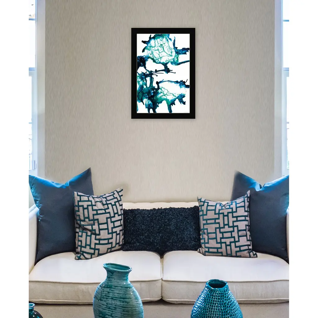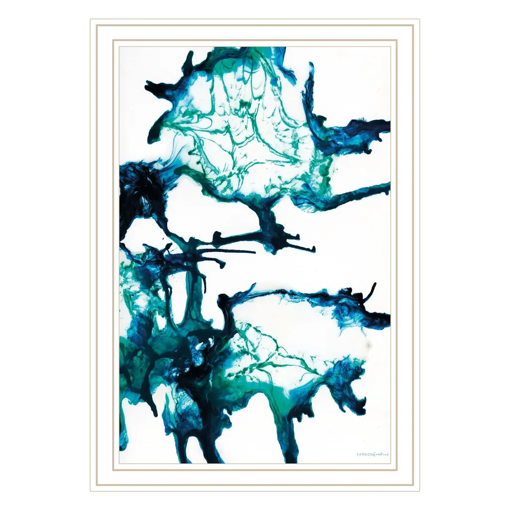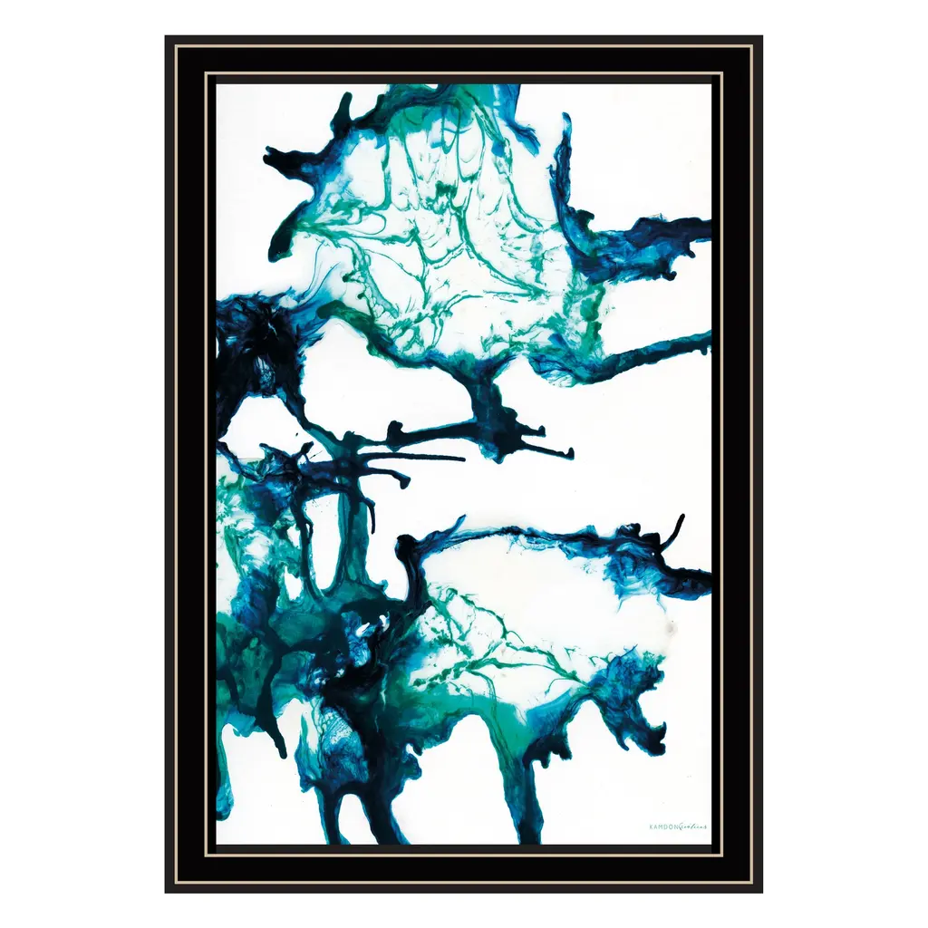 "Ocean Living 1" is by Artisan Kamdon Kreations. Impressions of the ocean; blue, black and white ink blots that lets your mind run wild about the ocean. Our products are proudly made by skilled American workers. The surface of our framed art is textured with a fade resistant coating, so no glass is necessary. A vegetable-based glue is used in the production of our products, and our frames are crafted from 100% recycled material, in keeping with our environmentally friendly approach toward manufacturing. Arrives ready to hang. Crafted with utmost care and precision by skilled American crafters, this artwork is a testament to their unwavering commitment to quality. Each brushstroke exudes passion and dedication, bringing the scene to life in vivid detail. The fade-resistant texture coating ensures that the vibrant colors will remain intact, preserving the canvas-like appearance for years to come. Investing in a piece that is truly one-of-a-kind. No other artwork can capture the same blend of tranquility, elegance, and wanderlust. It is a testament to your discerning taste and appreciation for the beauty that nature and art can conjure together. Brought to you by Continents Apart.