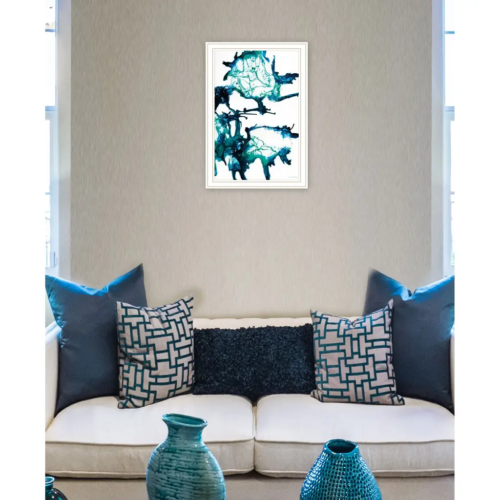 "Ocean Living 1" is by Artisan Kamdon Kreations. Impressions of the ocean; blue, black and white ink blots that lets your mind run wild about the ocean. Our products are proudly made by skilled American workers. The surface of our framed art is textured with a fade resistant coating, so no glass is necessary. A vegetable-based glue is used in the production of our products, and our frames are crafted from 100% recycled material, in keeping with our environmentally friendly approach toward manufacturing. Arrives ready to hang. Crafted with utmost care and precision by skilled American crafters, this artwork is a testament to their unwavering commitment to quality. Each brushstroke exudes passion and dedication, bringing the scene to life in vivid detail. The fade-resistant texture coating ensures that the vibrant colors will remain intact, preserving the canvas-like appearance for years to come. Investing in a piece that is truly one-of-a-kind. No other artwork can capture the same blend of tranquility, elegance, and wanderlust. It is a testament to your discerning taste and appreciation for the beauty that nature and art can conjure together. Brought to you by Continents Apart.