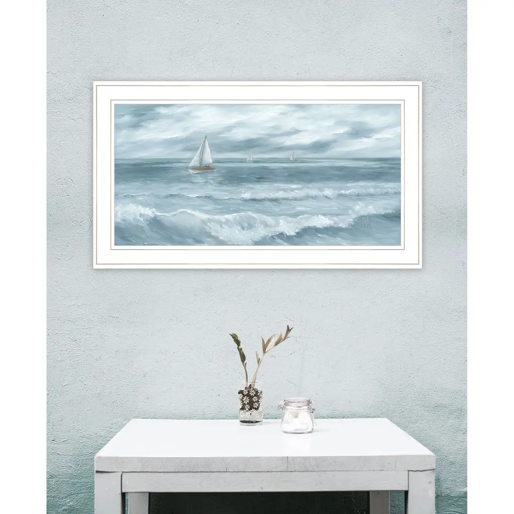 Trendydecor4u Coastal "Three Sailboats" Framed Print Wall Art - Multi