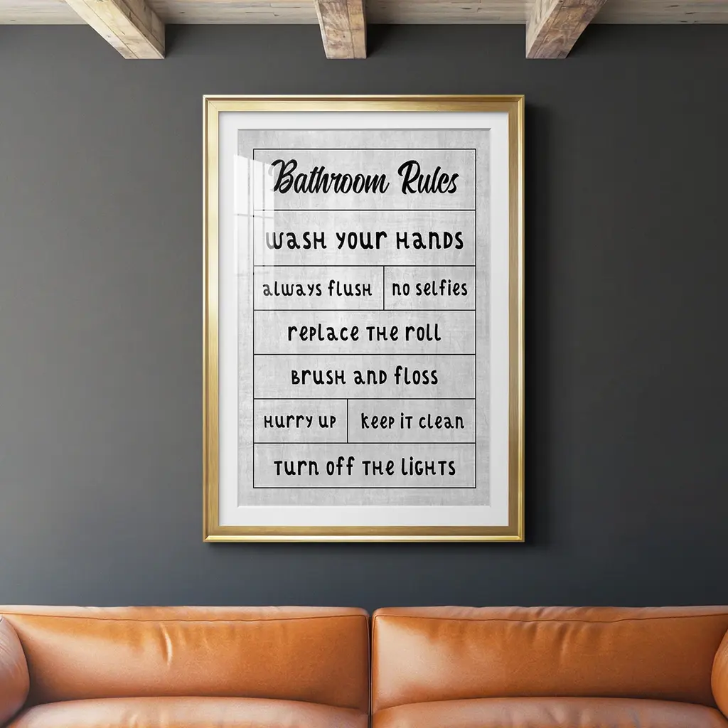 Trendydecor4u Contemporary "Bathroom Guide" Framed Print Wall Art - Multi