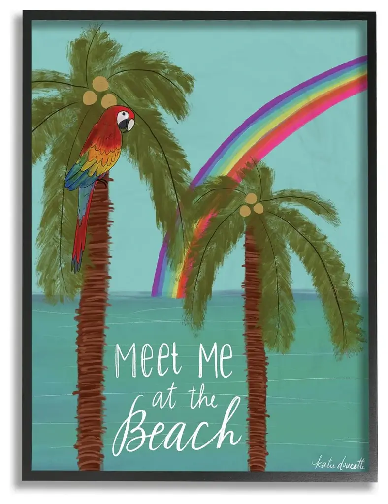 "Beach, Take Me There" is by Artisan Cindy Jacobs. A framed art piece of a Palm tree having a matrix of colors: yellow, oranges, greens and script saying: Beach Take Me There! What a cheery mix of color for any room in your beach home. Our products are proudly made by skilled American workers. The surface of our framed art is textured with a fade resistant coating, so no glass is necessary. A vegetable-based glue is used in the production of our products, and our frames are crafted from 100% recycled material, in keeping with our environmentally friendly approach toward manufacturing. Arrives ready to hang. Crafted with utmost care and precision by skilled American crafters, this artwork is a testament to their unwavering commitment to quality. Each brushstroke exudes passion and dedication, bringing the scene to life in vivid detail. The fade-resistant texture coating ensures that the vibrant colors will remain intact, preserving the canvas-like appearance for years to come. Investing in a piece that is truly one-of-a-kind. No other artwork can capture the same blend of tranquility, elegance, and wanderlust. It is a testament to your discerning taste and appreciation for the beauty that nature and art can conjure together. Brought to you by Continents Apart.