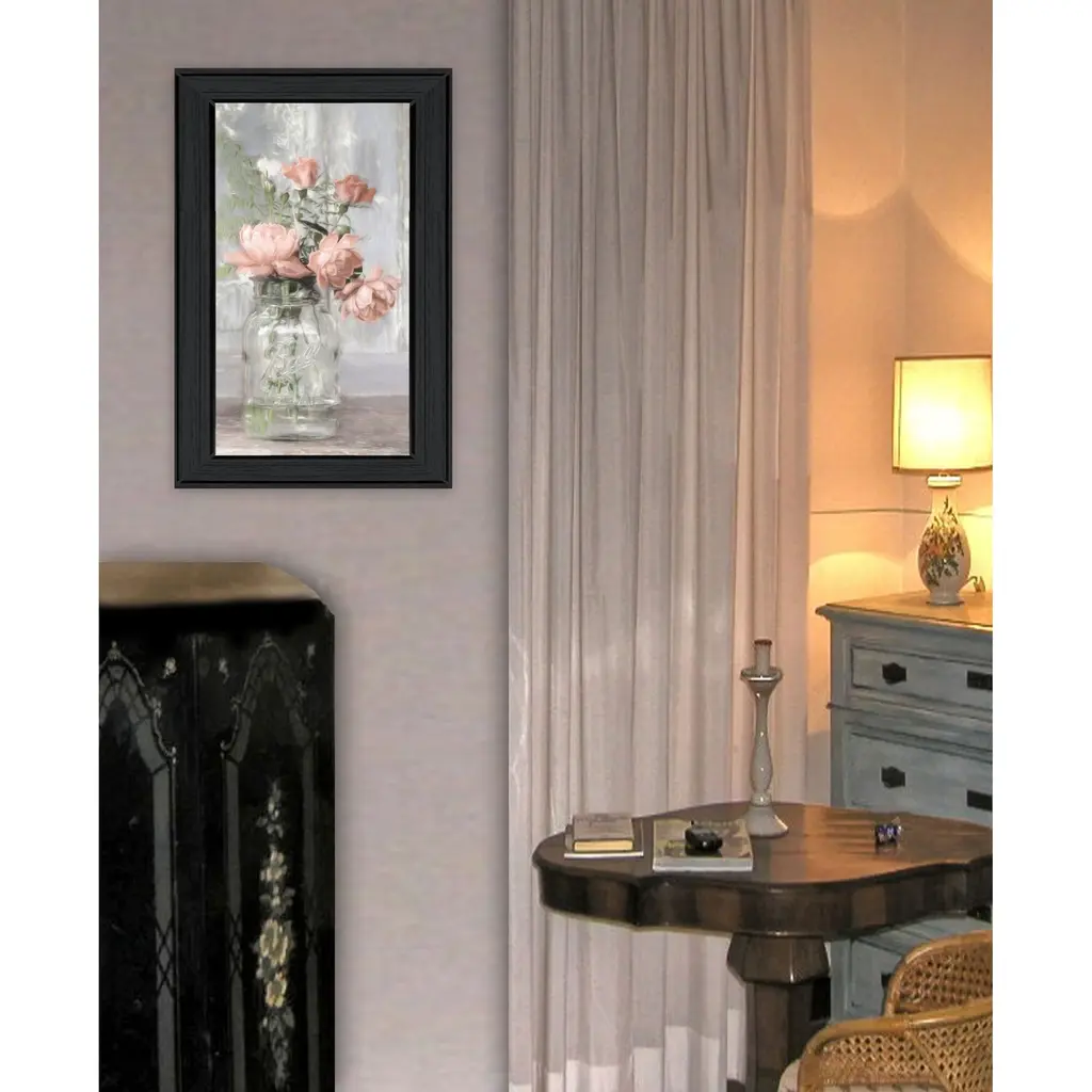 Trendydecor4u Contemporary "Cottage Peach Roses" Framed Print Wall Art - Charcoal