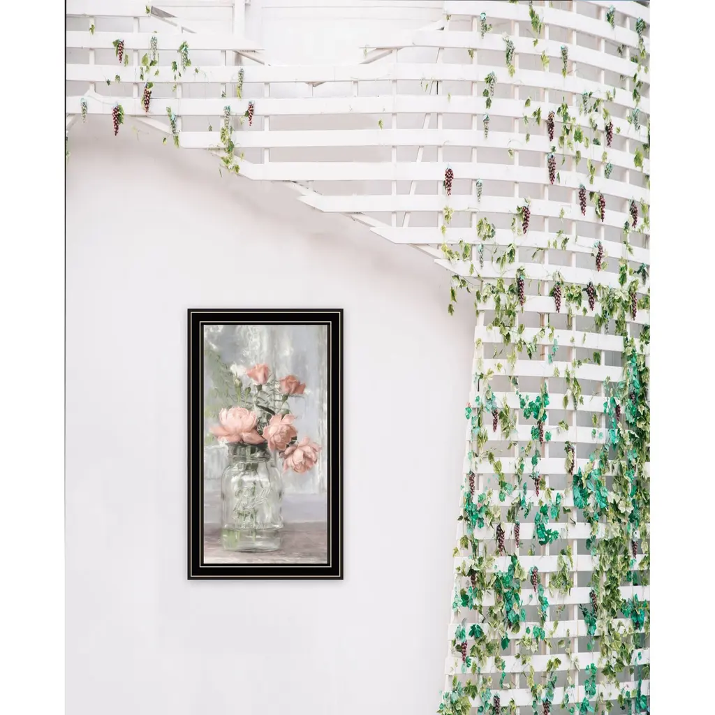 Trendydecor4u Contemporary "Cottage Peach Roses" Framed Print Wall Art - Multi