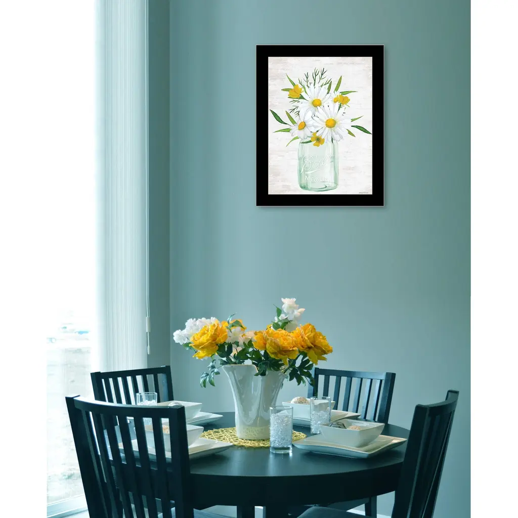 "Floral Bouquet 3" is by Artisan Lettered & Lined. Would you enjoy a jar full of daisies? Our products are proudly made by skilled American workers. The surface of our framed art is textured with a fade resistant coating, so no glass is necessary. A vegetable-based glue is used in the production of our products, and our frames are crafted from 100% recycled material, in keeping with our environmentally friendly approach toward manufacturing. Arrives ready to hang. Crafted with utmost care and precision by skilled American crafters, this artwork is a testament to their unwavering commitment to quality. Each brushstroke exudes passion and dedication, bringing the scene to life in vivid detail. The fade-resistant texture coating ensures that the vibrant colors will remain intact, preserving the canvas-like appearance for years to come. Investing in a piece that is truly one-of-a-kind. No other artwork can capture the same blend of tranquility, elegance, and wanderlust. It is a testament to your discerning taste and appreciation for the beauty that nature and art can conjure together. Brought to you by Continents Apart.