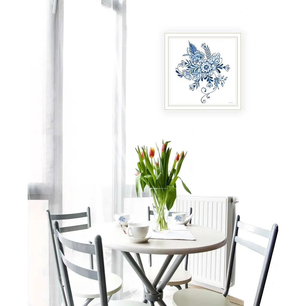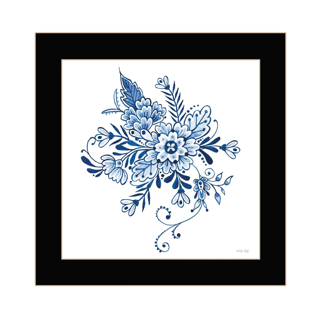 "Floral Calligraphy Sketches I" is by Artisan Cindy Jacobs .This framed wall art is a framed print of Calligraphy sketches of Blue and white Florals. These royal blue color sketches will enhance any room. Our products are proudly made by skilled American workers. The surface of our framed art is textured with a fade resistant coating, so no glass is necessary. A vegetable-based glue is used in the production of our products, and our frames are crafted from 100% recycled material, in keeping with our environmentally friendly approach toward manufacturing. Arrives ready to hang. Crafted with utmost care and precision by skilled American crafters, this artwork is a testament to their unwavering commitment to quality. Each brushstroke exudes passion and dedication, bringing the scene to life in vivid detail. The fade-resistant texture coating ensures that the vibrant colors will remain intact, preserving the canvas-like appearance for years to come. Investing in a piece that is truly one-of-a-kind. No other artwork can capture the same blend of tranquility, elegance, and wanderlust. It is a testament to your discerning taste and appreciation for the beauty that nature and art can conjure together. Brought to you by Continents Apart.