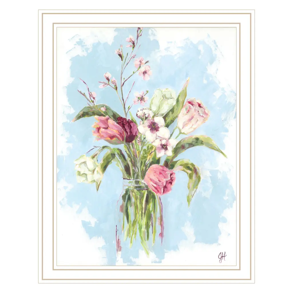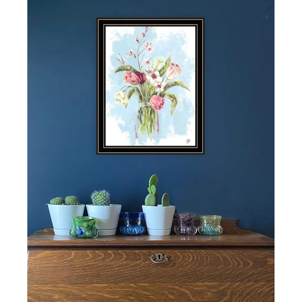 "Flourish" is by Artisan Jennifer Holden. This features a framed wall art. A flourish of blooms to set the vase in your home or office. Our products are proudly made by skilled American workers. The surface of our framed art is textured with a fade resistant coating, so no glass is necessary. A vegetable-based glue is used in the production of our products, and our frames are crafted from 100% recycled material, in keeping with our environmentally friendly approach toward manufacturing. Arrives ready to hang. Crafted with utmost care and precision by skilled American crafters, this artwork is a testament to their unwavering commitment to quality. Each brushstroke exudes passion and dedication, bringing the scene to life in vivid detail. The fade-resistant texture coating ensures that the vibrant colors will remain intact, preserving the canvas-like appearance for years to come. Investing in a piece that is truly one-of-a-kind. No other artwork can capture the same blend of tranquility, elegance, and wanderlust. It is a testament to your discerning taste and appreciation for the beauty that nature and art can conjure together. Brought to you by Continents Apart.